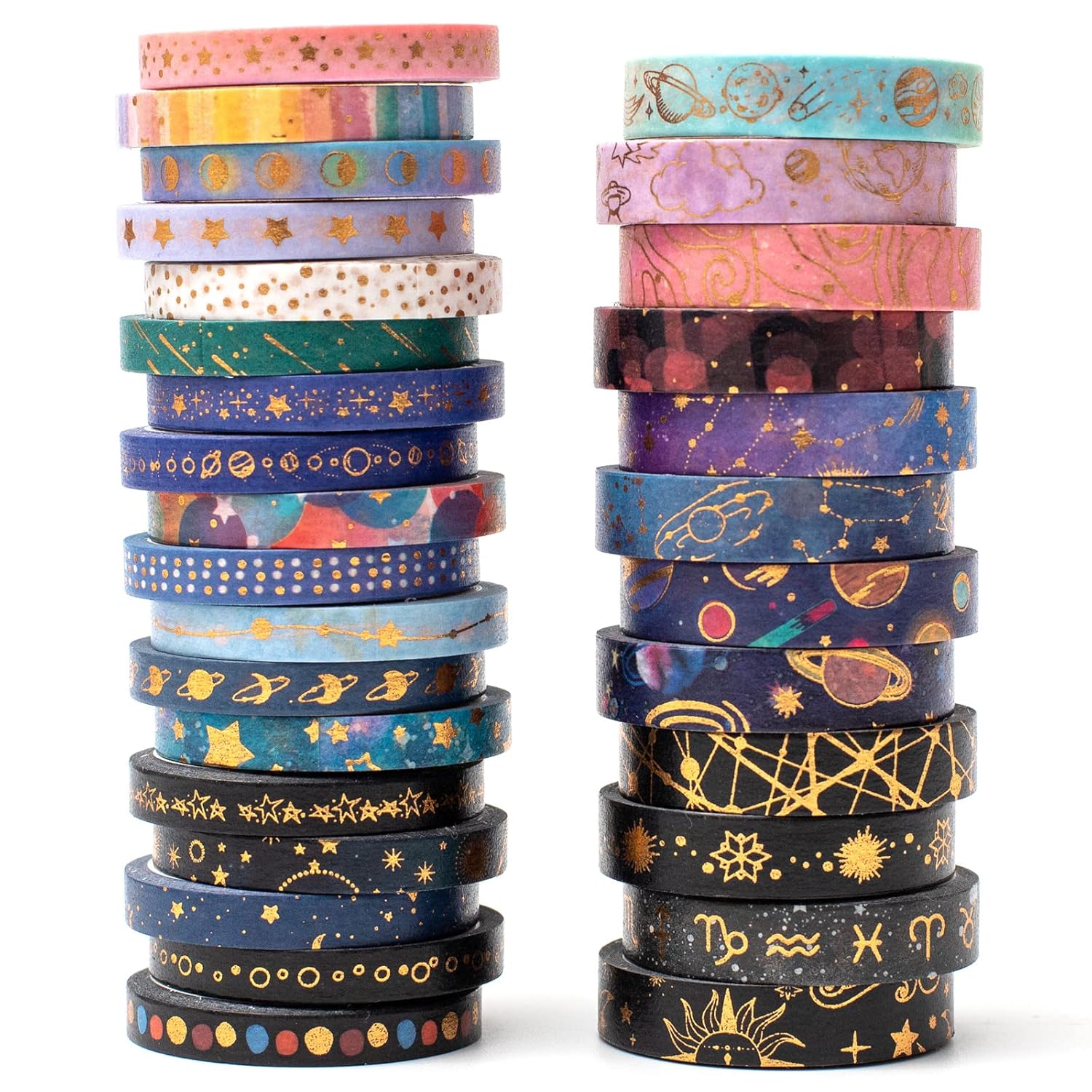 YUBX Skinny Galaxy Washi Tape Set 30 Rolls Gold Foil Decorative Starry Space Masking Tapes for Arts, DIY Crafts, Journals, Planners, Scrapbook, Wrapping
