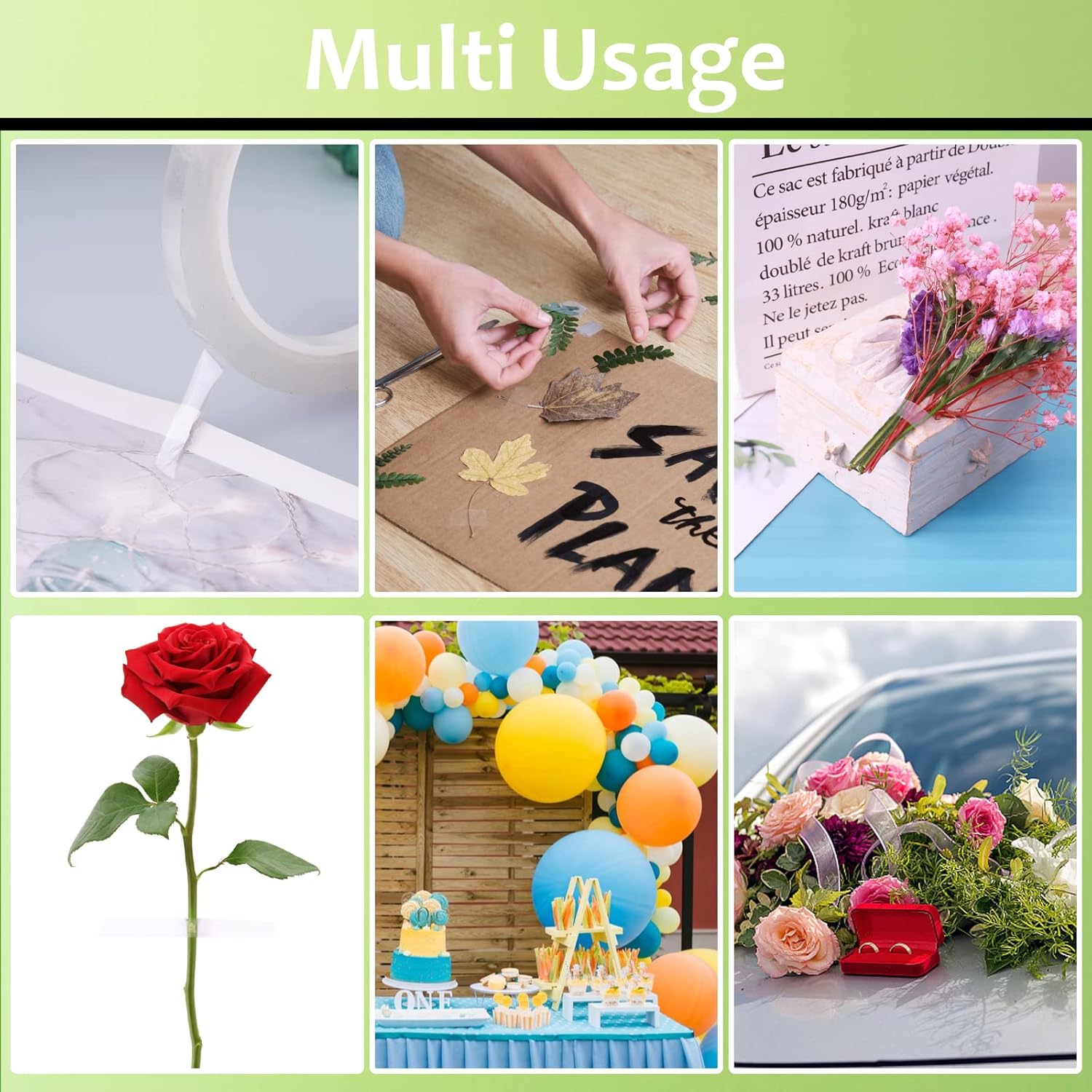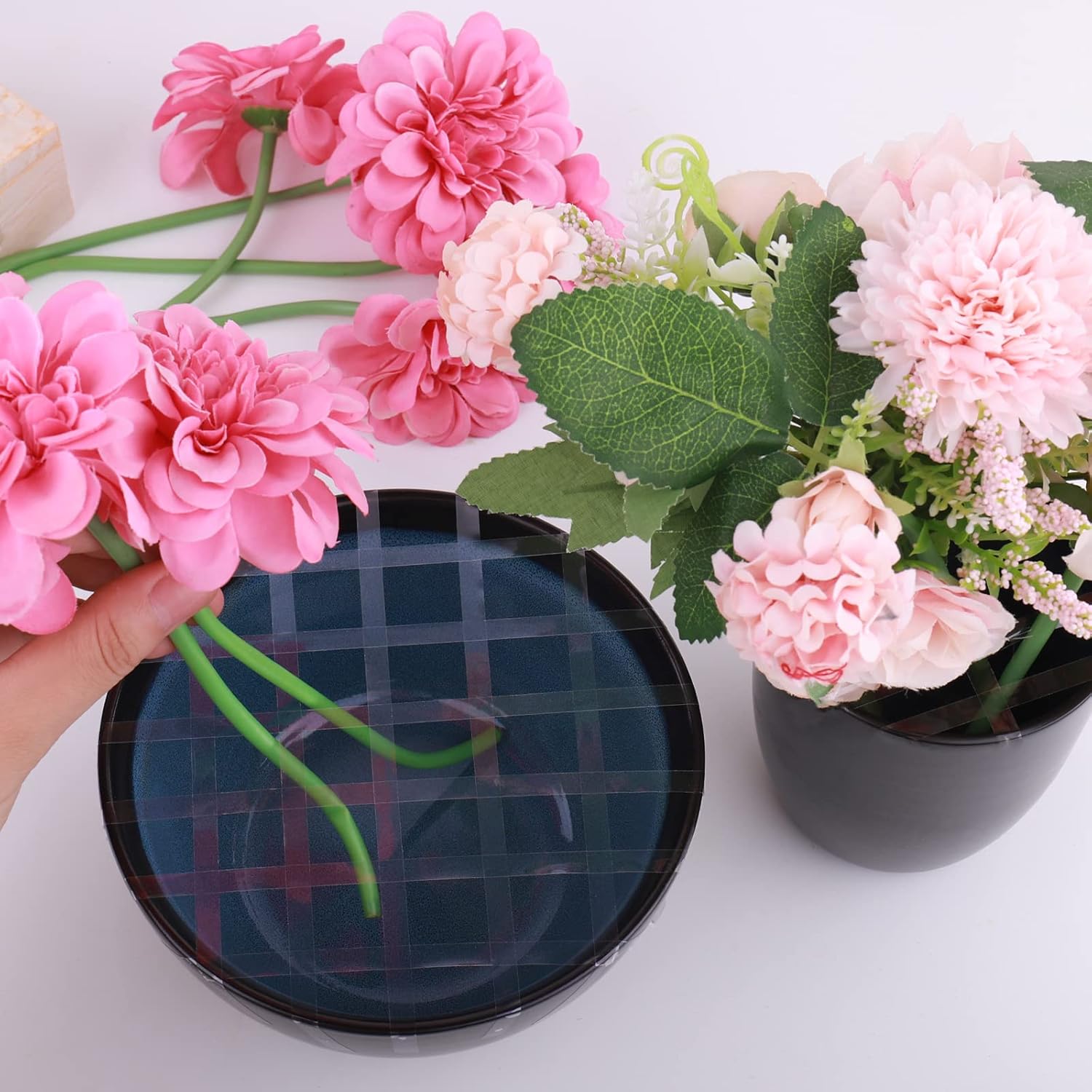 - 【Usage of the Floral Tape】make a woven pattern at the top of the vase so that you can easily place each flower where you want. Make sure the target surface to attach is clean and dry, it is recommended to use smooth surface materials, such as plastic, glass, porcelain, books, cars, etc.