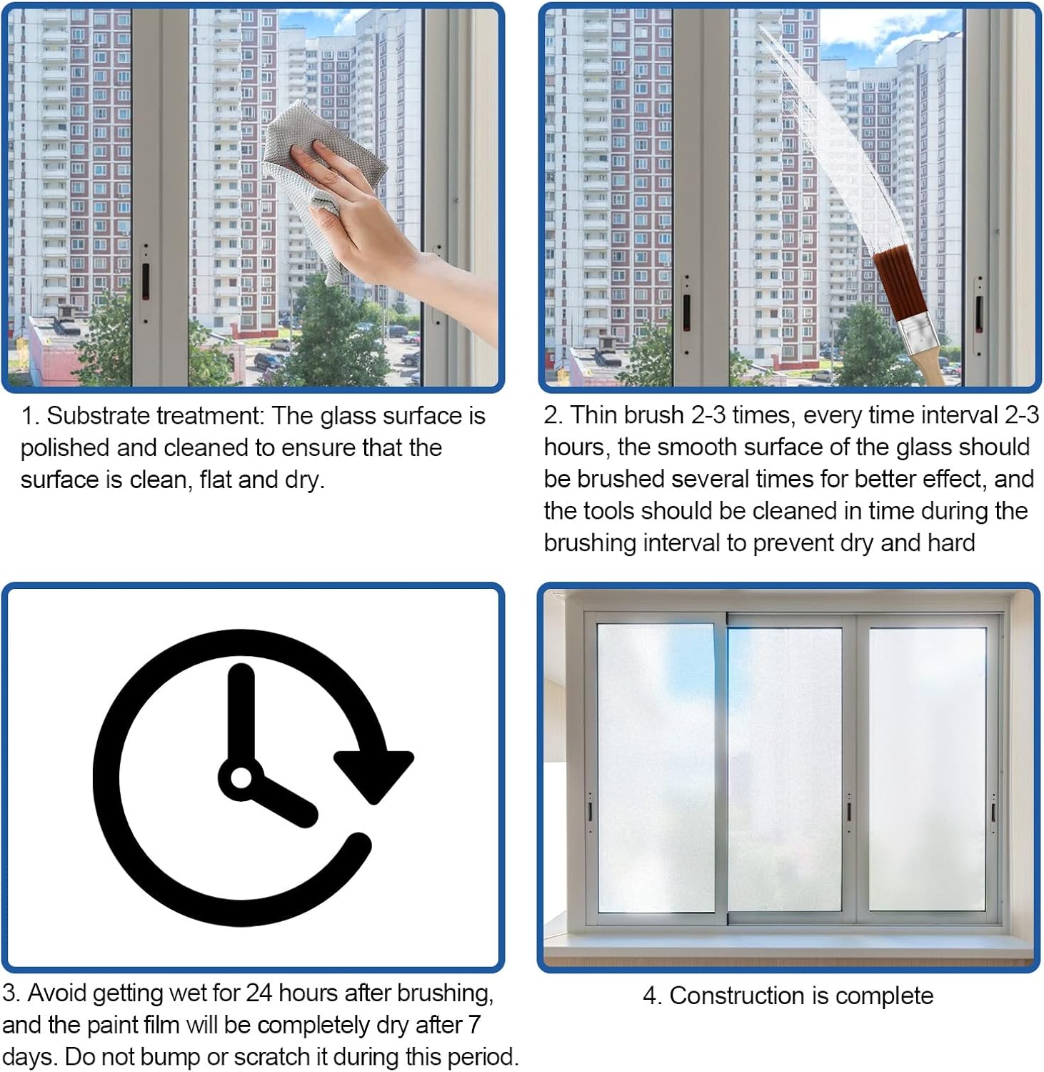 - Door and Window Shading Frosted Glass Paint: Door and window shading frosted glass paint formula that is water and moisture resistant, colorfast, and strong adhesion for a long-lasting finish without compromising daylighting.