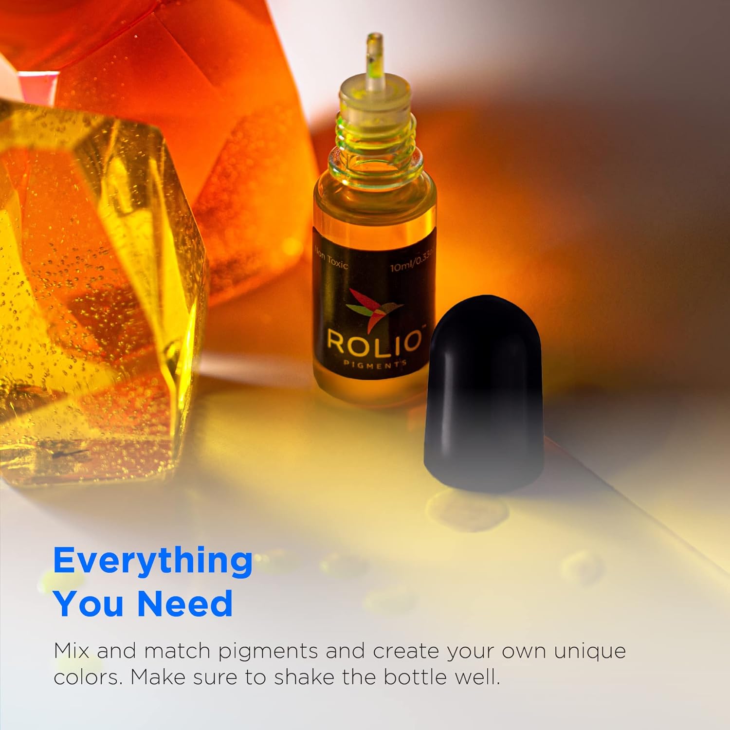 Rolio Pigments Resin Liquid Pigment Translucent Colors - 24 Vibrant Colors for Epoxy Resin, Jewelry Making, Acrylic Paint, Art, DIY Crafts Production, Garment Accessories - 0.33 oz/10 ml Each