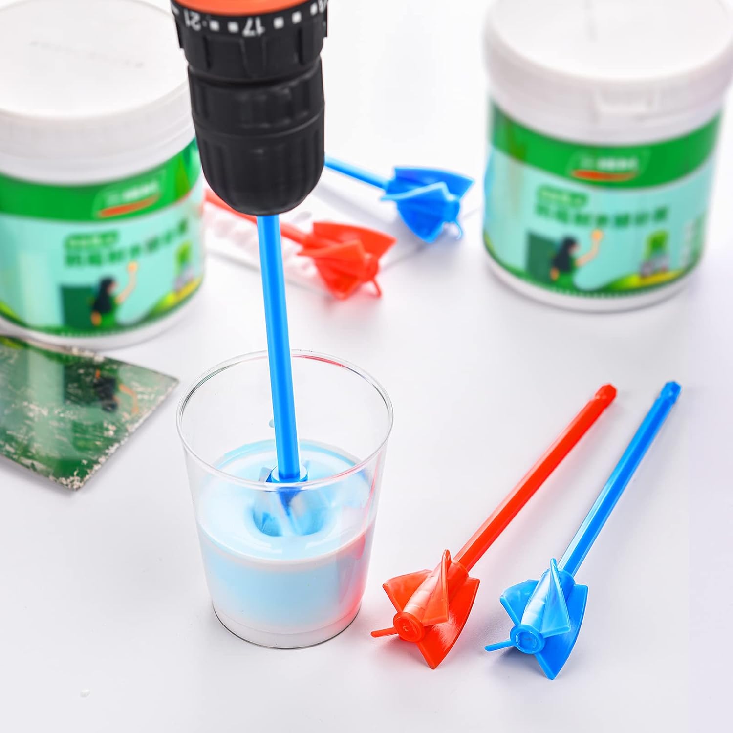 - You Will Get: the package contains 12 pieces of paint mixer drill attachment in 2 different colors, red and blue, so the ample quantity is sufficient to satisfy your needs