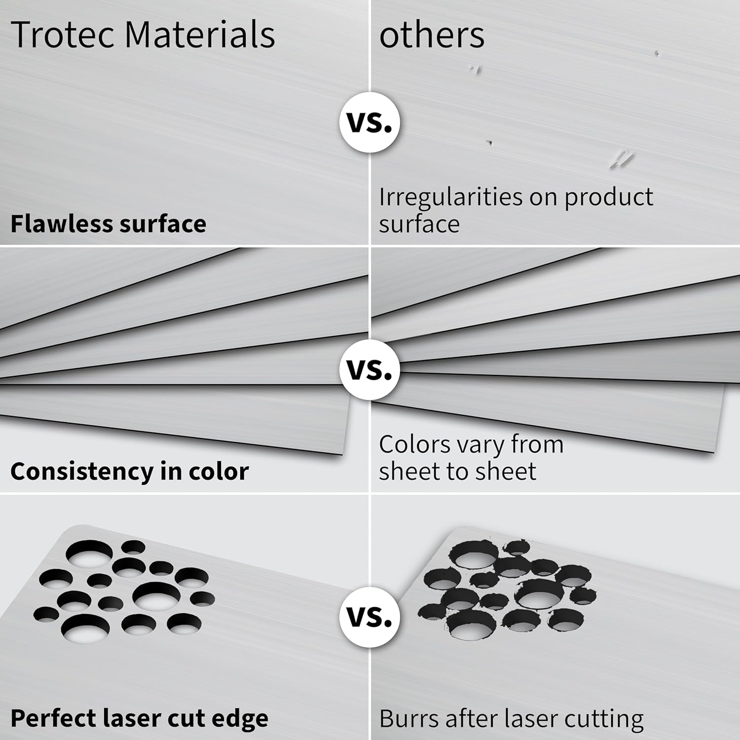 - Perfect Laser-Cut Edge: TroLase Metallic is a lightweight alternative to real metal that can easily be laser cut. This 2 layer plastic for engraving ensures laser cutting leads to perfect, smooth edges without any burrs on laser engravable plastic sheets and laser acrylic sheet metallic.