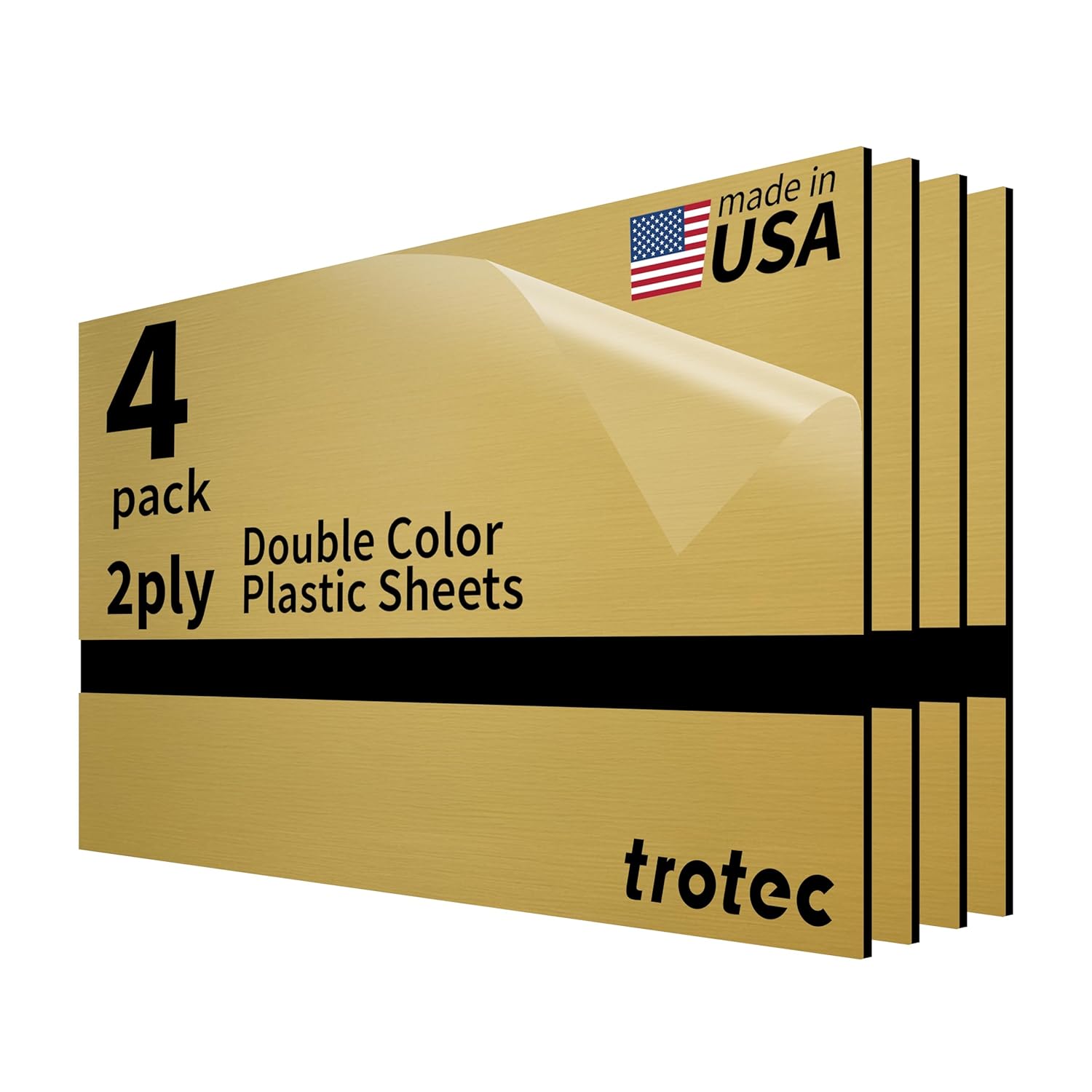 Trotec | Metallic Looking Acrylic Sheet | 12"x24"x1/16, 4 Pcs | European Gold/Black | Metallic Finish - Scratch Resistant for Laser Engraving & Cutting,Printing,Glowforge,Name Plate | USA Made