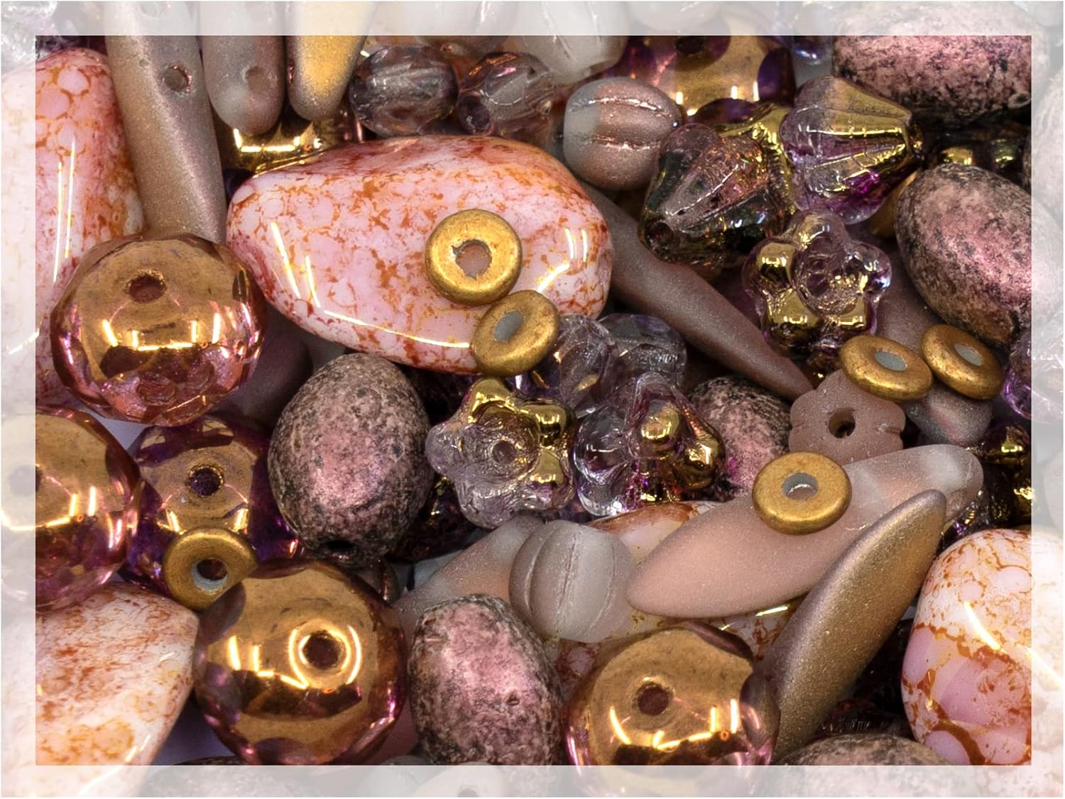 2.1oz (60 g) Mix of Unique Czech Bohemia Glass Pressed Beads, Matte and Glossy, Hand Made, Antique Copper Pink