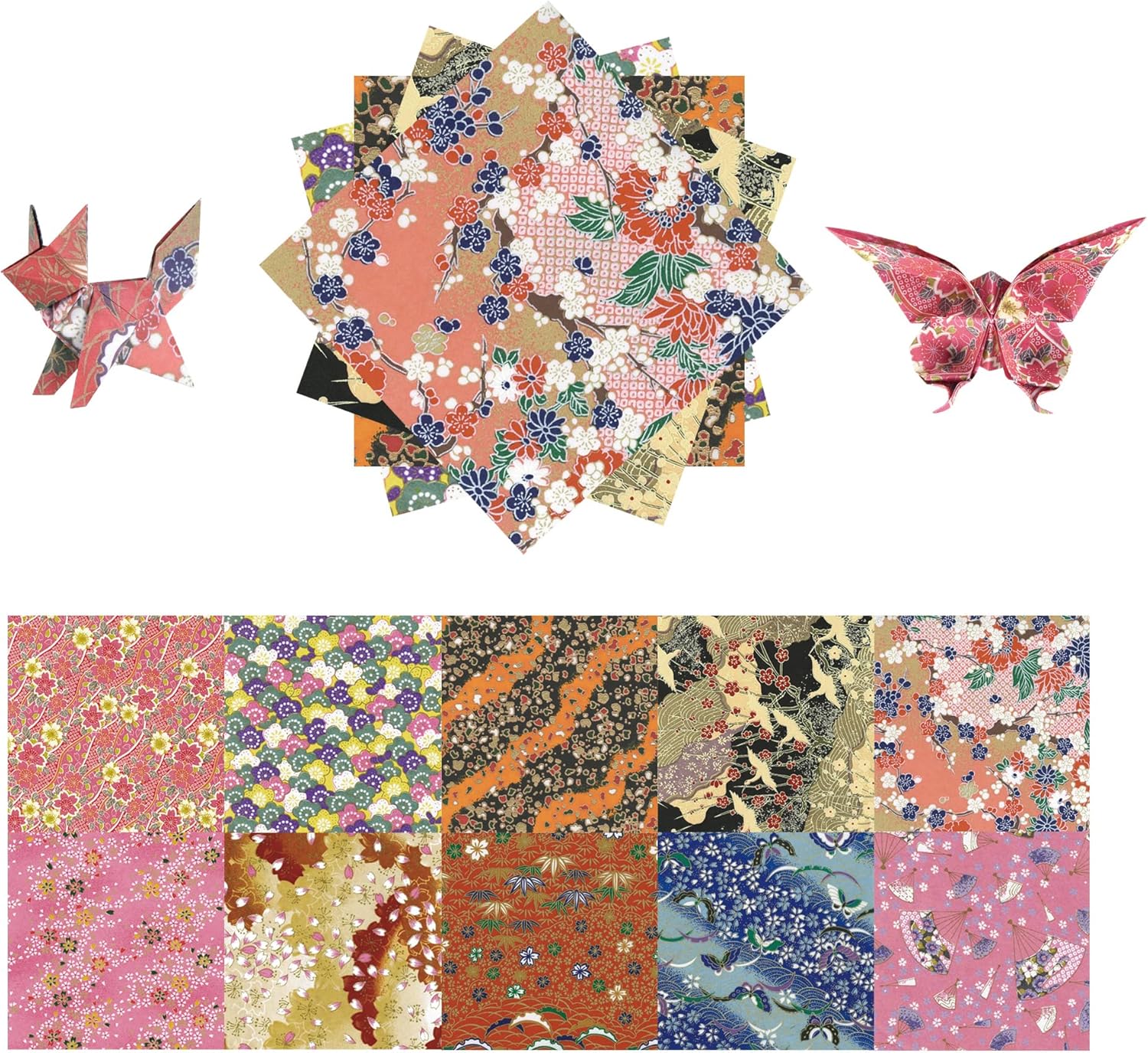 Origami Paper Kit 50 Sheets 6 Inch Square Double Sided Color 10 Vivid Sakura Washi Chiyo Colors for Hand Crafts Origami Paper Arts Creativity.Cherry Blossoms