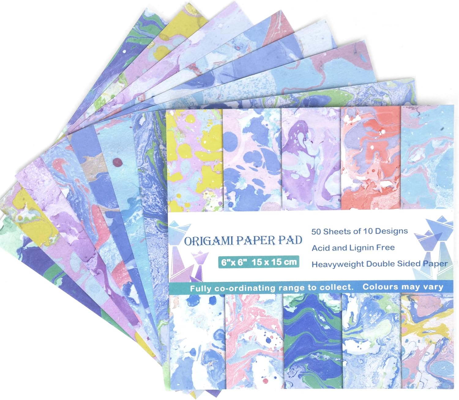 Origami Paper Kit 50 Sheets 6 Inch Square Double Sided Color 10 Vivid Japanese Washi Colors for Hand Crafts Origami Paper Arts Creativity.Watercolor Texture