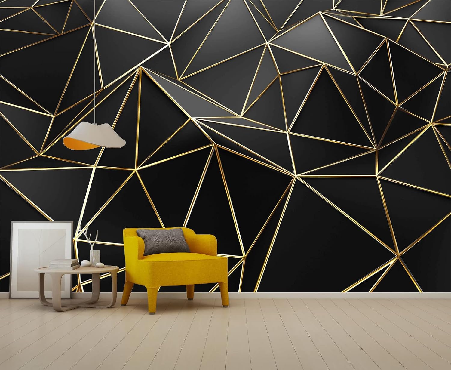 Black and Gold Wallpaper 3D Abstract Geometric Wall Mural for Bedroom Living Room TV Background Wall(Not Peel and Stick)