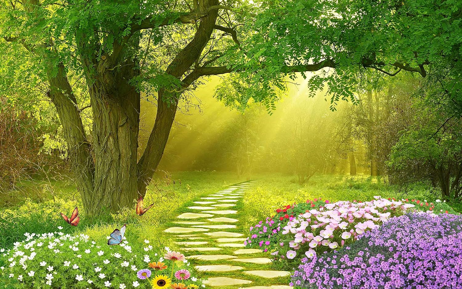 Forest Wallpaper Flower and Road in Forest Wall Mural for Bedroom Living Room TV Background Sofa Wall(Not Peel and Stick)
