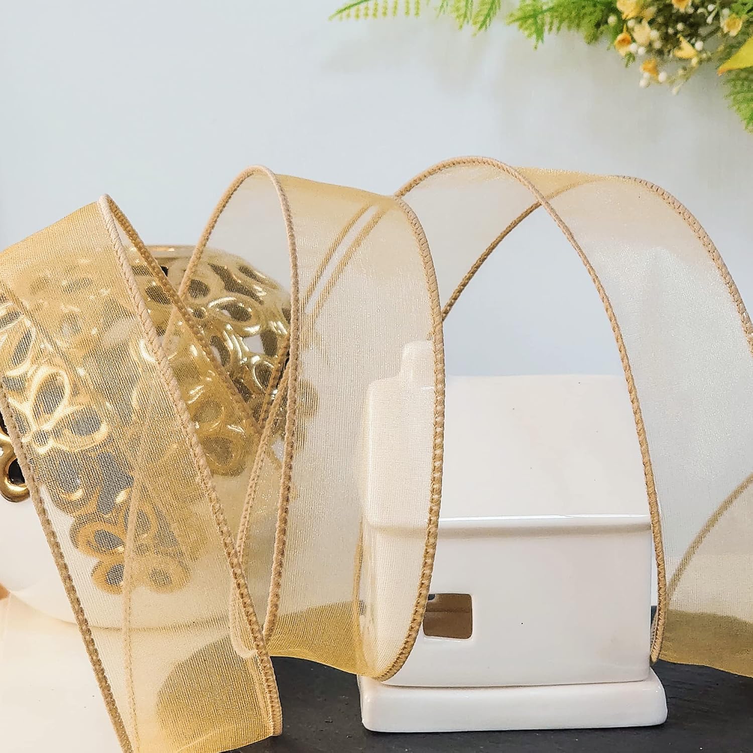 - A MUST-HAVE FOR DECORATION - Don't miss it if you're choosing a Sheer Organza Wired Ribbon 1.5" Tan (Gold) for your decoration! Our ribbon works perfectly for decorating and adding finishing touch to your craft projects. Simple and elegant.
