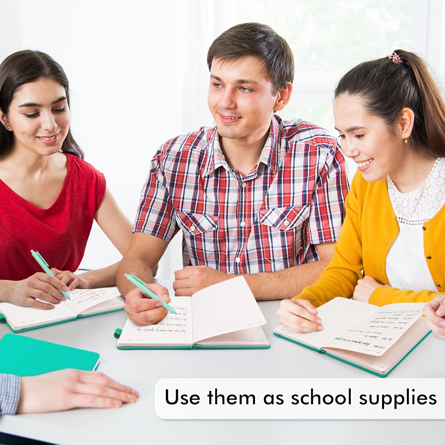 - Feela 5 Pack Classic Ruled Notebooks contains 5 aqua ruled sturdy cover notebooks and 5 Black Retractable Pens. Each of the notebooks measures 8.3” x 5.1”, which is perfect to carry and easily held by young girls and boys. These black cute pens are customized to be placed in the pen holder, which is pretty convenient.