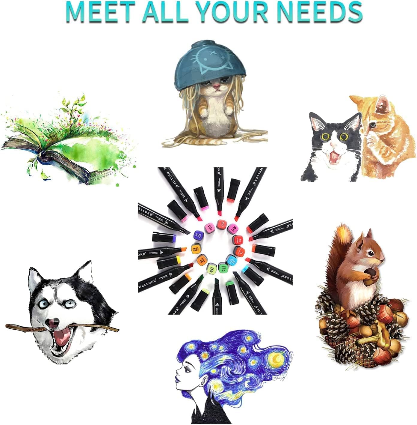 - TWO PENS IN ONE:Save money and space with dual tip markers that allow you to create fine details with the bullet tip or broad, sweeping strokes with the chisel tip and immerse yourself in art.blend shades beautifully with alcohol markers that also reduce coloring lines, helping even beginners create professional effects with these blendable markers