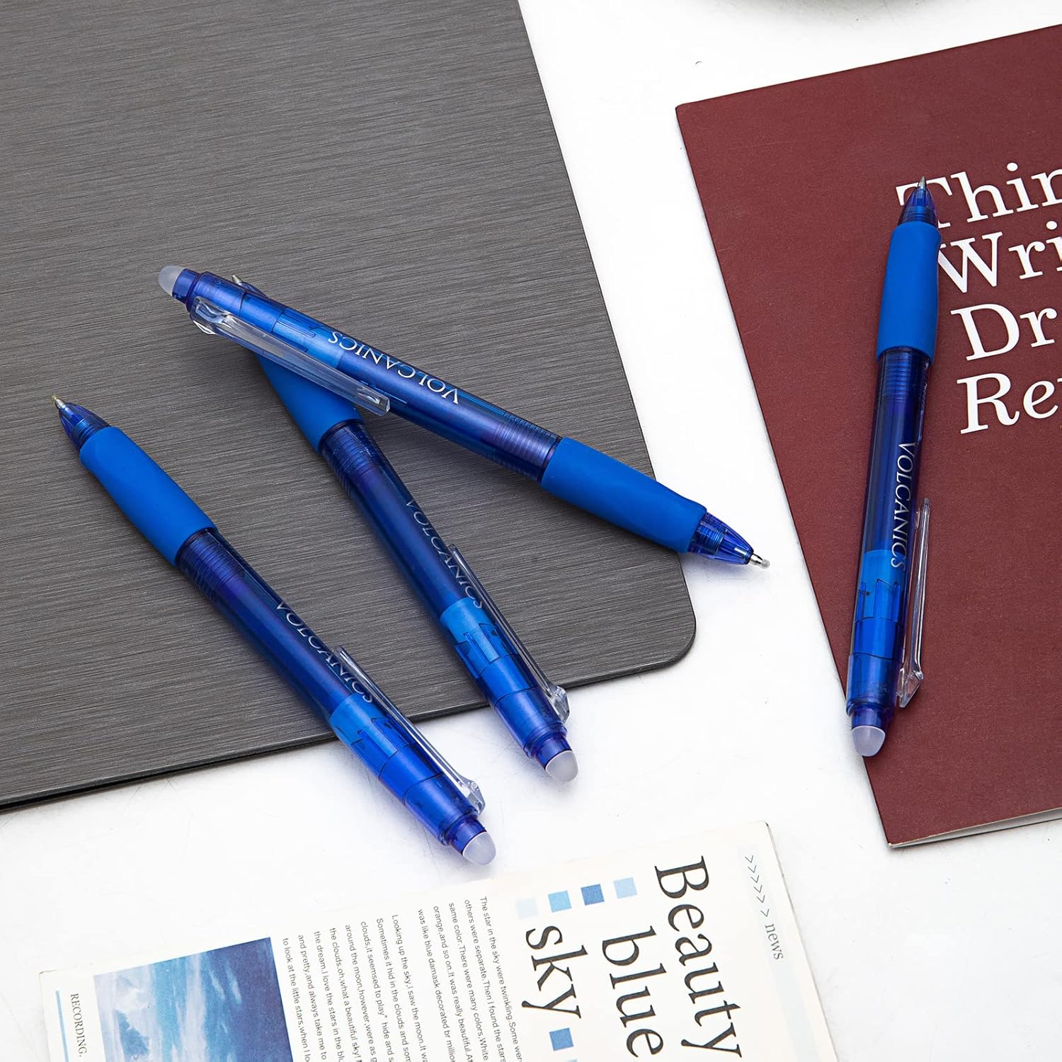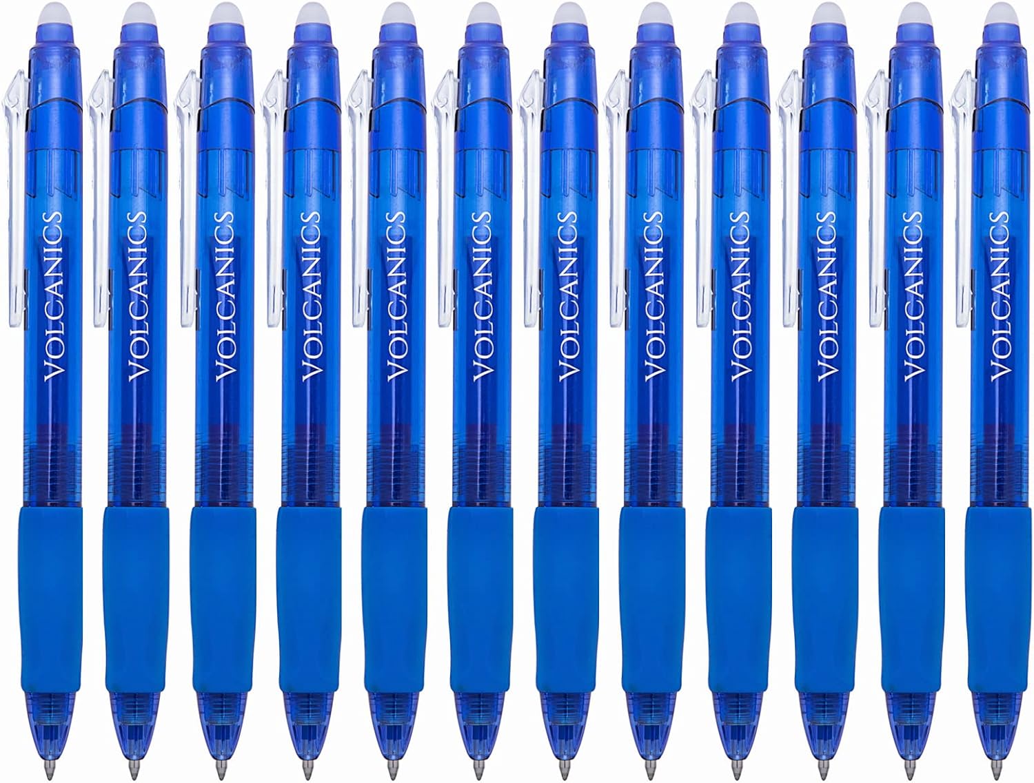 Volcanics Retractable Clicker Erasable Gel Pens - 0.7mm Ball Point, Heat Erase with Built-in Eraser, 12 Pack Blue