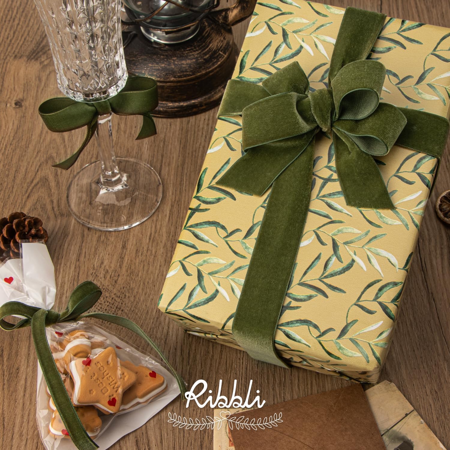 Ribbli Moss Green Velvet Ribbon,Polyester Velvet 3/8 Inches Continuous10-Yard Spool,Christmas Ribbon for Gift Wrapping,Floral Bouquets, Home Decor