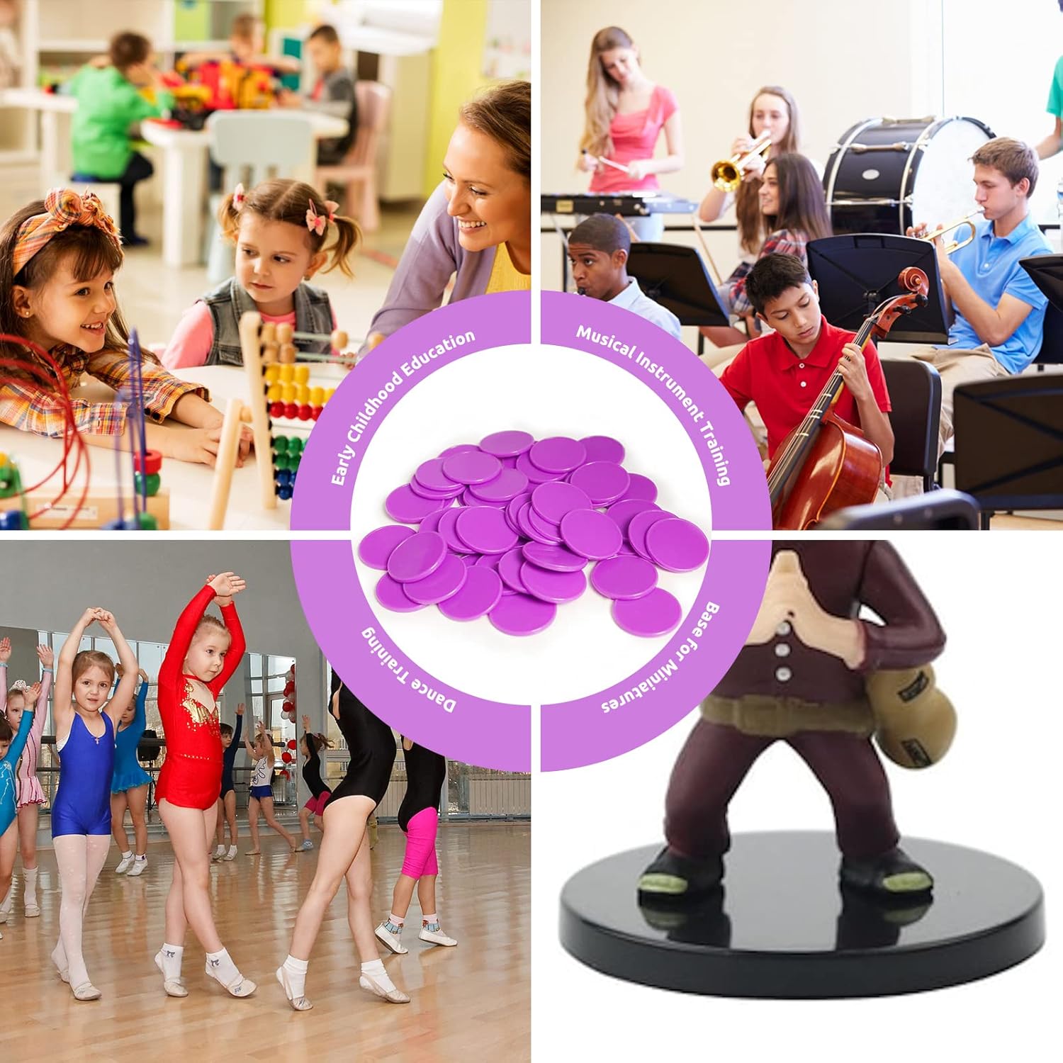 Set of 100 Opaque Plastic Learning Counters Mini Poker Chips Game Tokens with Storage Box (Purple, 1 Inch)