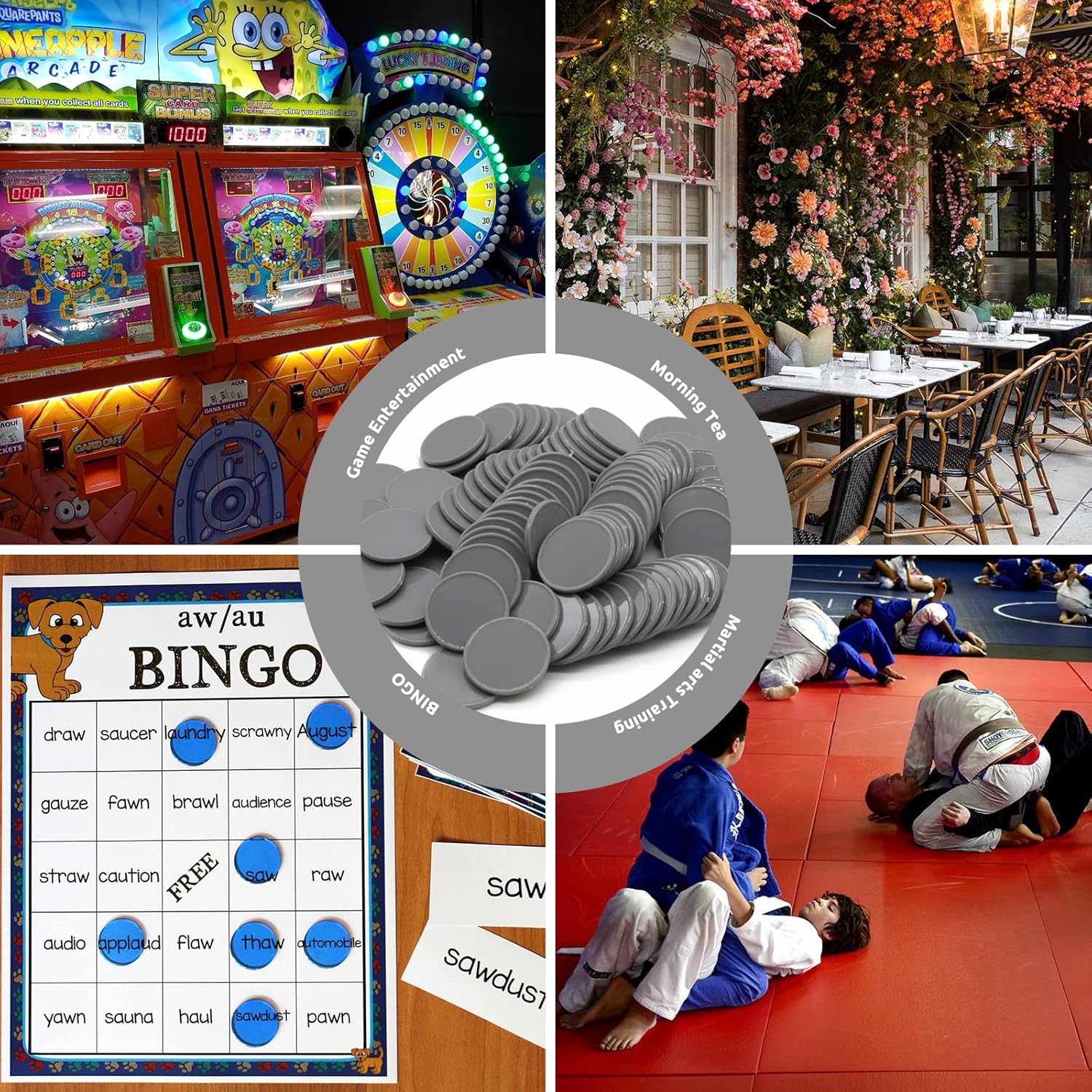 Set of 100 Opaque Plastic Learning Counters Mini Poker Chips Game Tokens with Storage Box (Gray, 1 Inch)