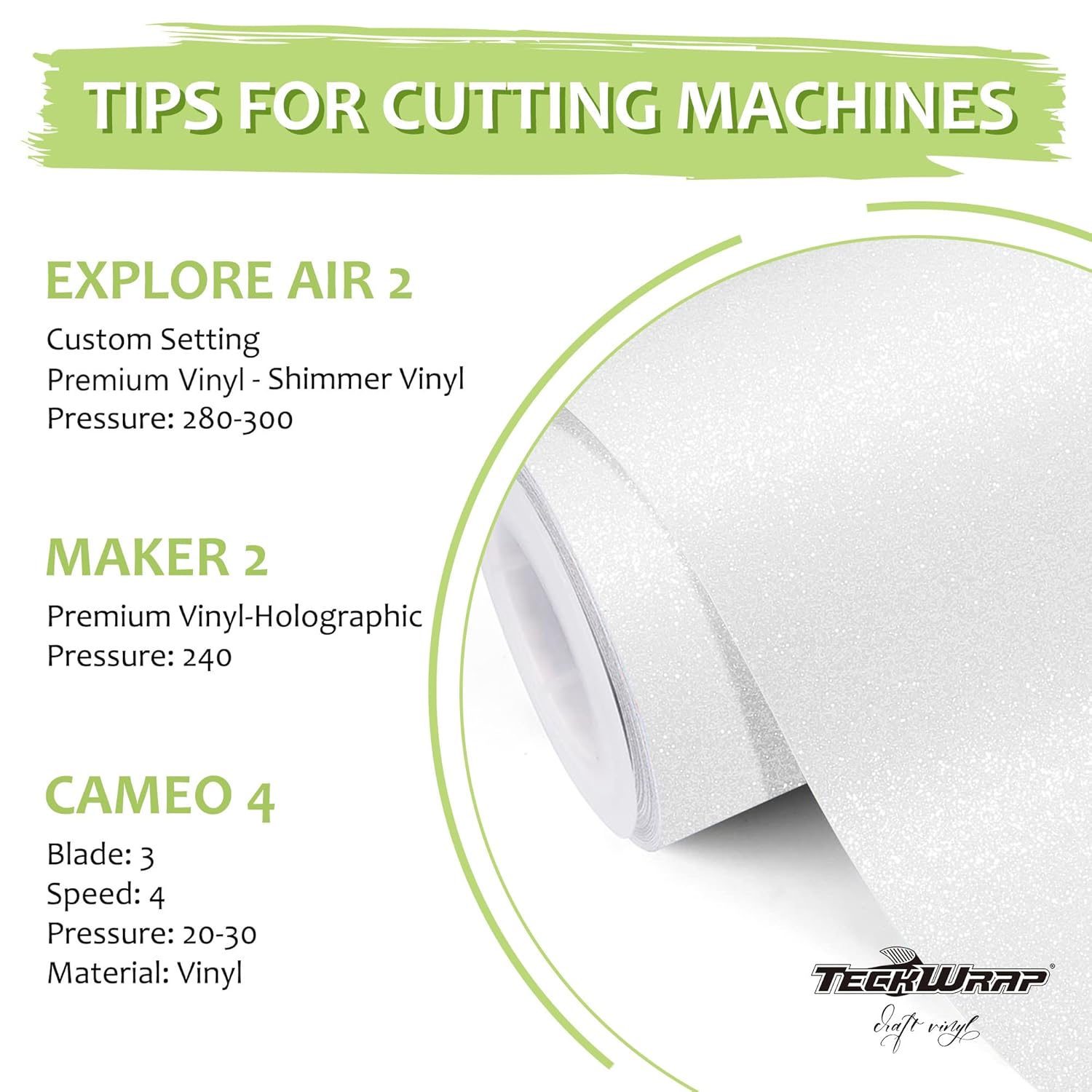 - Pro Tips for Best Results – Always do a test cut before working on permanent glitter vinyl, permanent vinyl glitter, or white sparkle vinyl permanent projects. For smooth transfers, pair with TECKWRAP High Tack Transfer Tape. This shimmer vinyl and shimmer permanent vinyl is best applied to smooth, flat surfaces for flawless results.