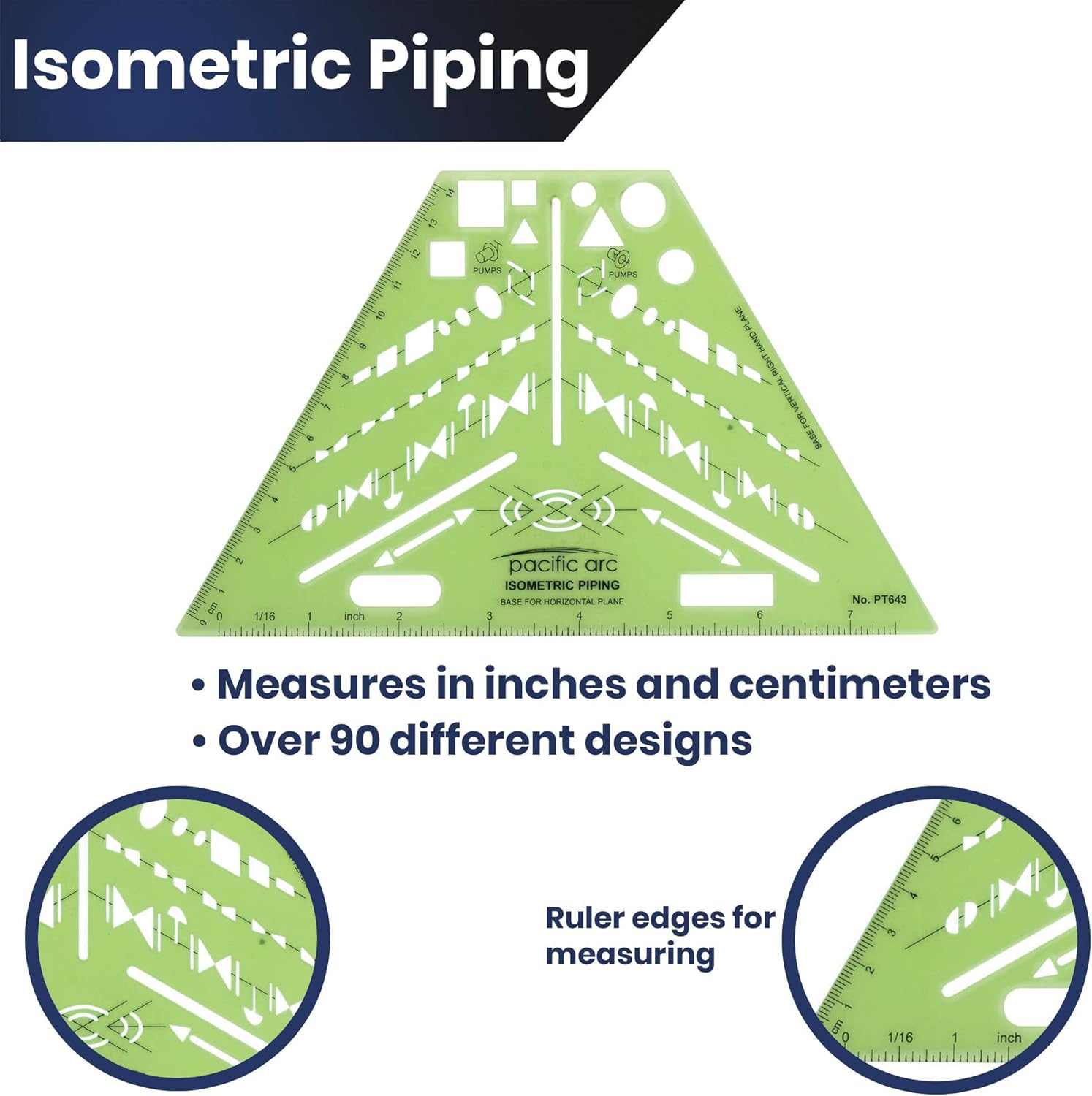 - COMPREHENSIVE TEMPLATE - This template contains the symbols for valves, flanges, elbows, reducers, caps, and pumps. Ideal for students, architects, and interior designers. Includes both a 7 inch and 14 centimeter rulers