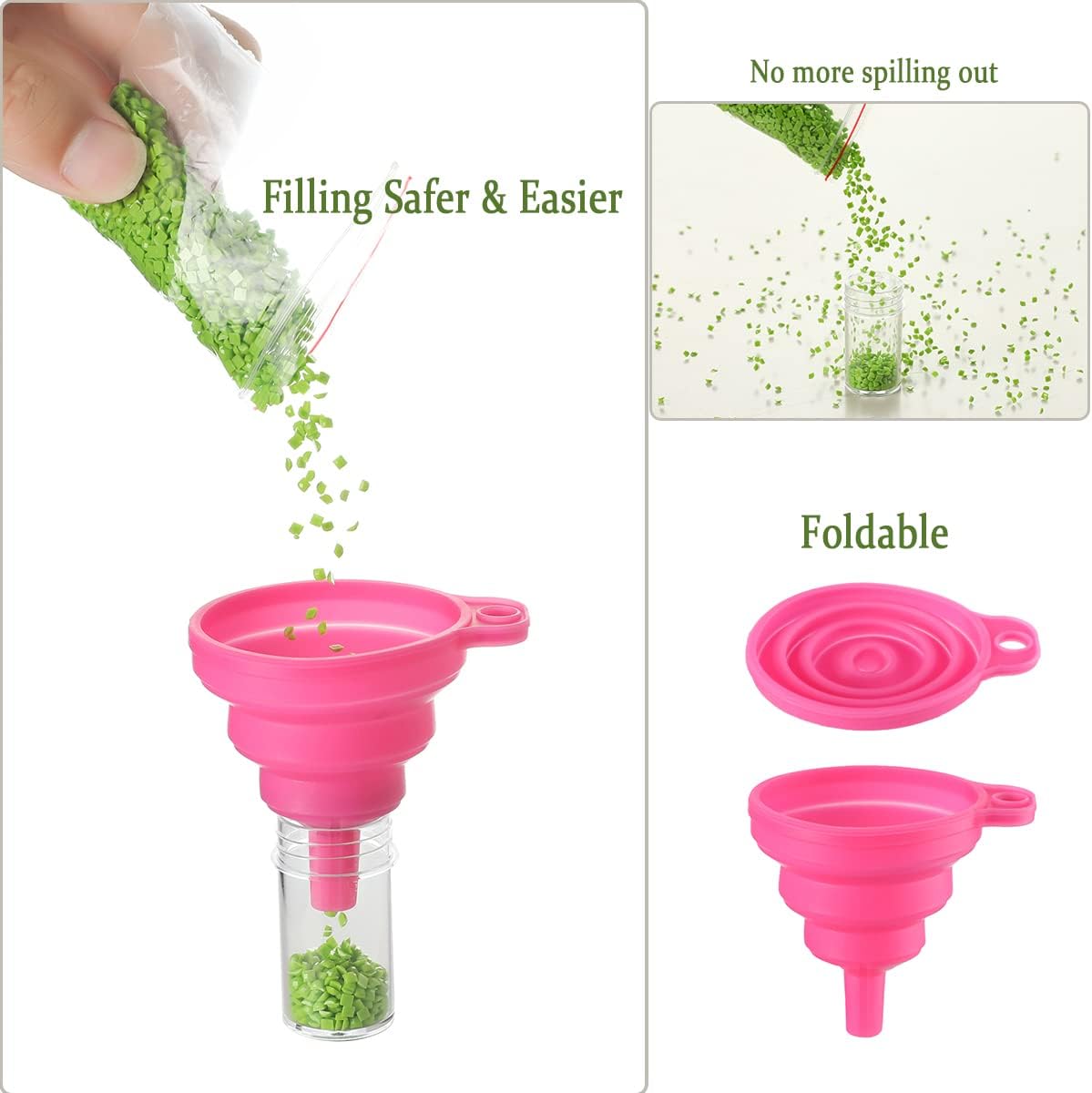 - Practical Diamond Art Tools: We specially selected the most basic tools to help you organize your beads and diamonds. The foldable silicone funnel can avoid spilling diamonds which lets you fill diamonds safer and easier. Comes with 176 plastic transparent jars with lids, so you can label and sort them to perfectly organize all your diamonds.