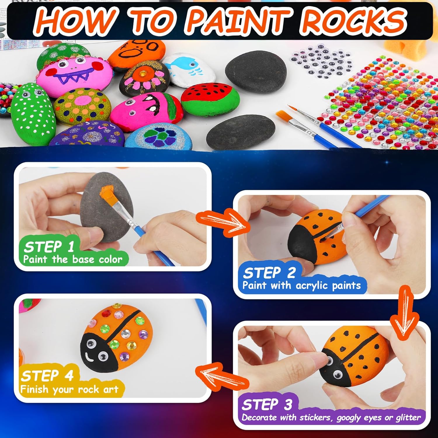 - 💝【GREAT GIFT for ROCK ART LOVERS!】The rock painting supplies present an unbridled platform for enthusiasts, inspiring you to unleash your imagination and creativity, turning humble stones into unparalleled masterpieces. This is a perfect arts and crafts gift for enthusiast who likes paint for rocks on Holiday!