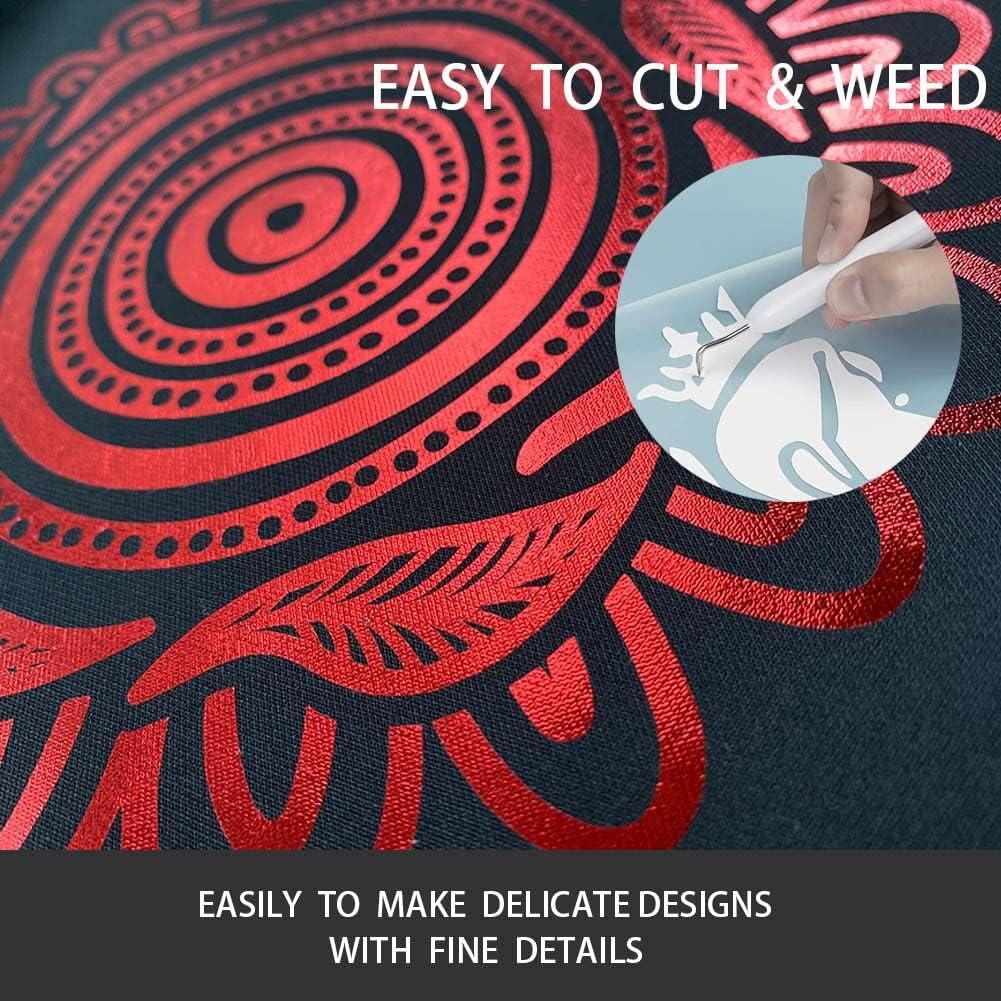- Easy to cut and weed, great stickness, compatible with all vinyl cutters. Red foil htv rolls packing are easy and convenient to cut into different size of art designs or logos or letters and perfect for 12" x 12" and 12" x 24" cutting mats.