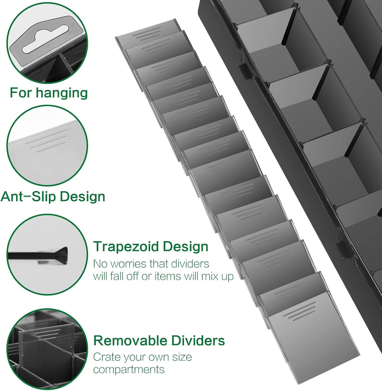 - Features: The removable dividers inside the box can be adjusted to your favorite size.