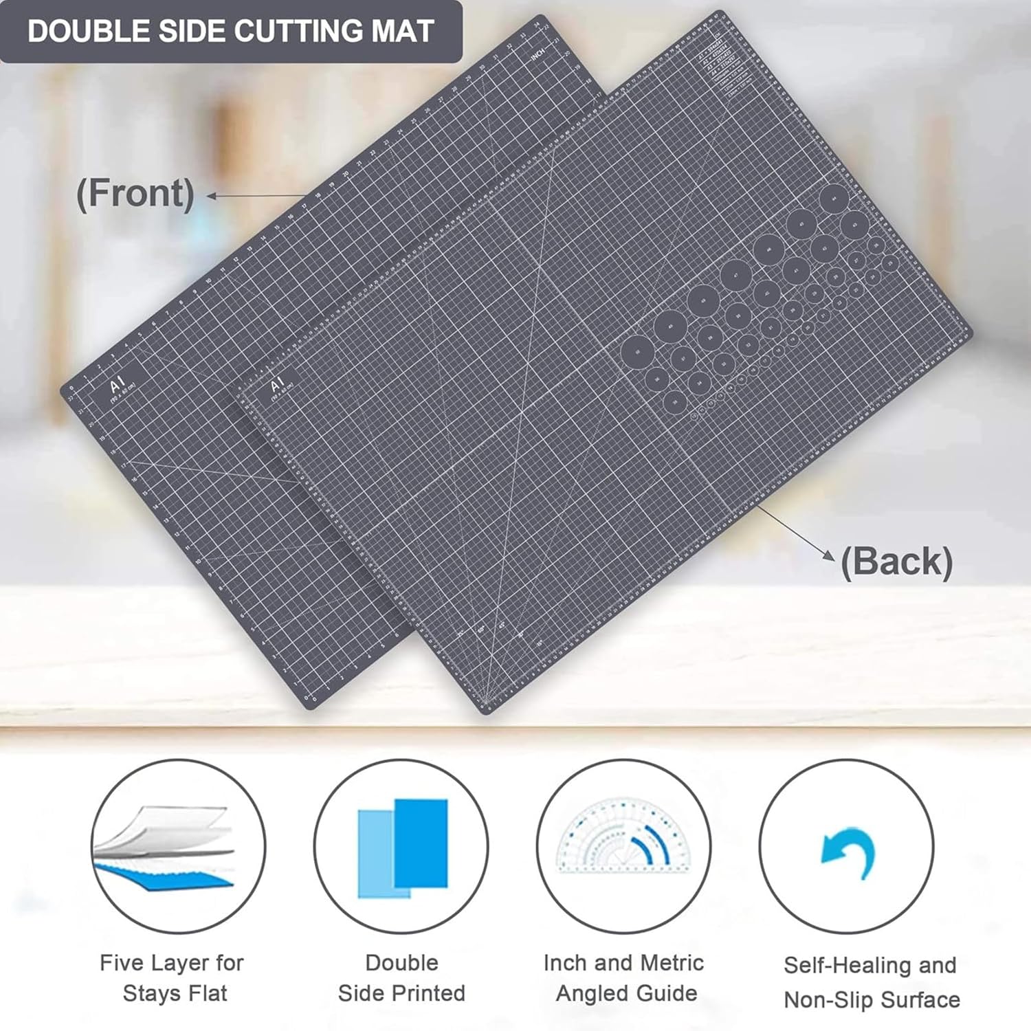 - SUPER DURABLE: This double-sided fabric cutting mat can withstand substantial amounts of pressure and the sharp points of tools, providing a protection to the floors, furniture, counters and tabletops beneath it. Our cutting mat also can put on the office tables, then you can put your computer on the cutting mat.