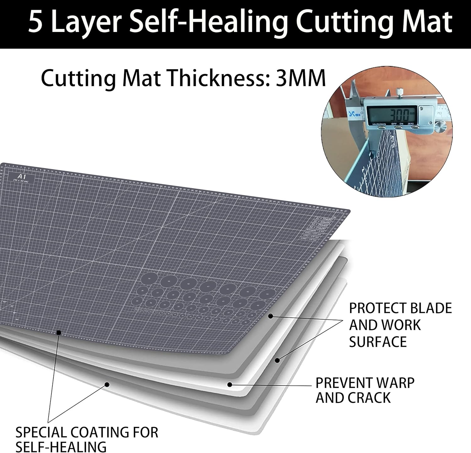 - SELF-HEALING DESIGN: Made of 5-layer PVC material, Unique self healing properties protects your craft knives, straight cutting blades, rotary cutter and work surface. Re-seals after every cut.