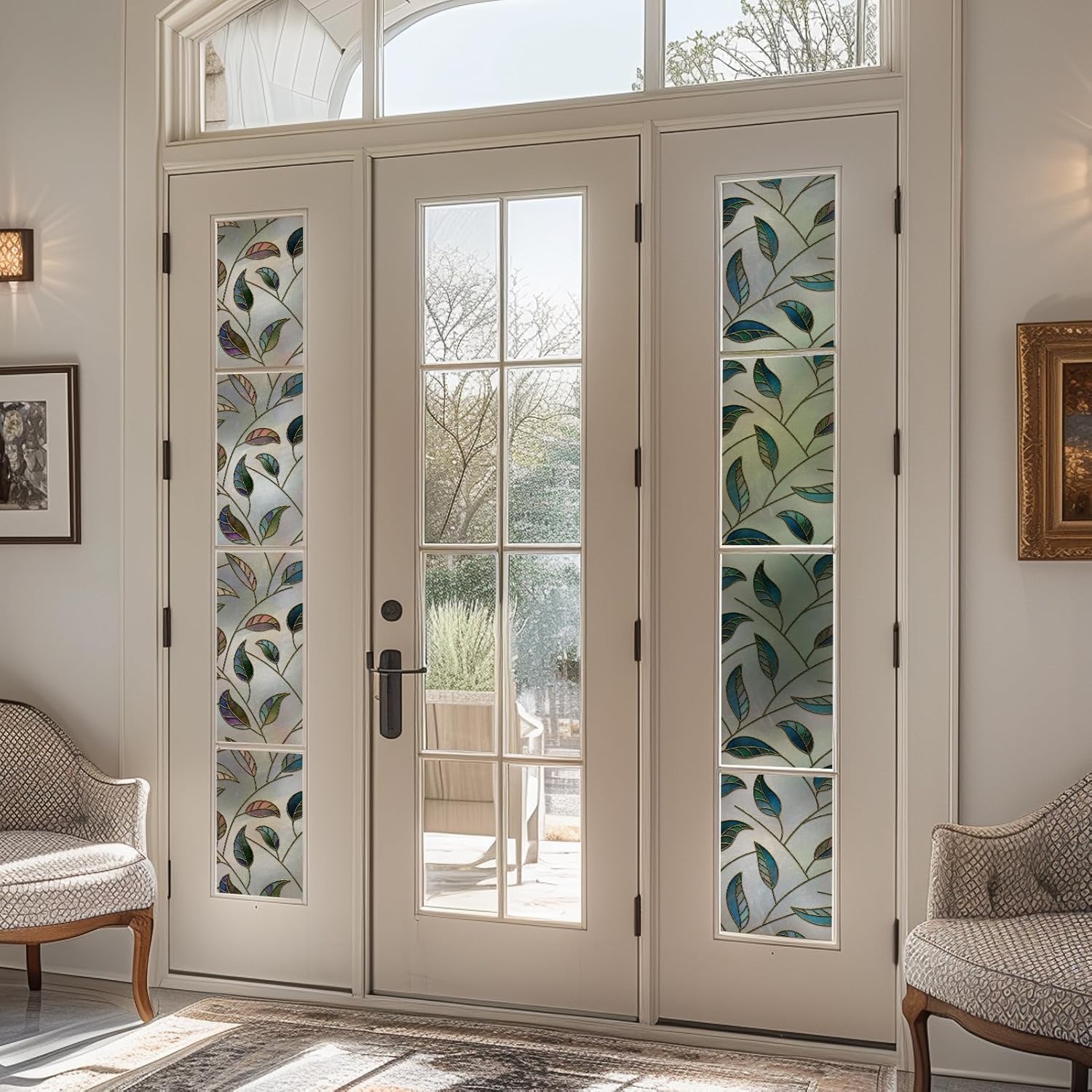 - DKTIE stained glass window film is not real glass, but it uses our independently developed UV7 printing technology to create a very realistic glass texture on the surface of the window film, covered with elegant and cute eucalyptus leaf patterns, making the colored window film look better than real stained glass. Most importantly, the window film is more economical