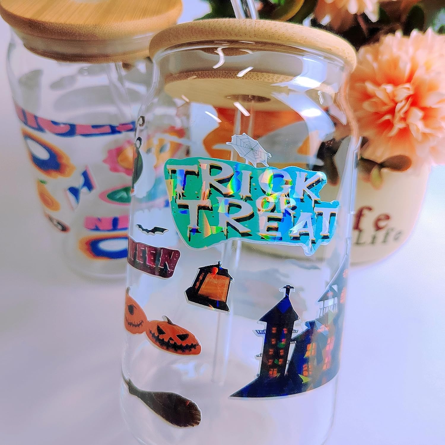 - What's included: 9 Sheets of transparent vinyl with broken glass design. 9 Sheets of transparent vinyl with rainbow design. 9 Sheets of transparent vinyl with stars design. 9 Sheets of transparent vinyl with glitter design. Create a stunning multicolour effect to your art or craft projects, instantly gives a professional finish.