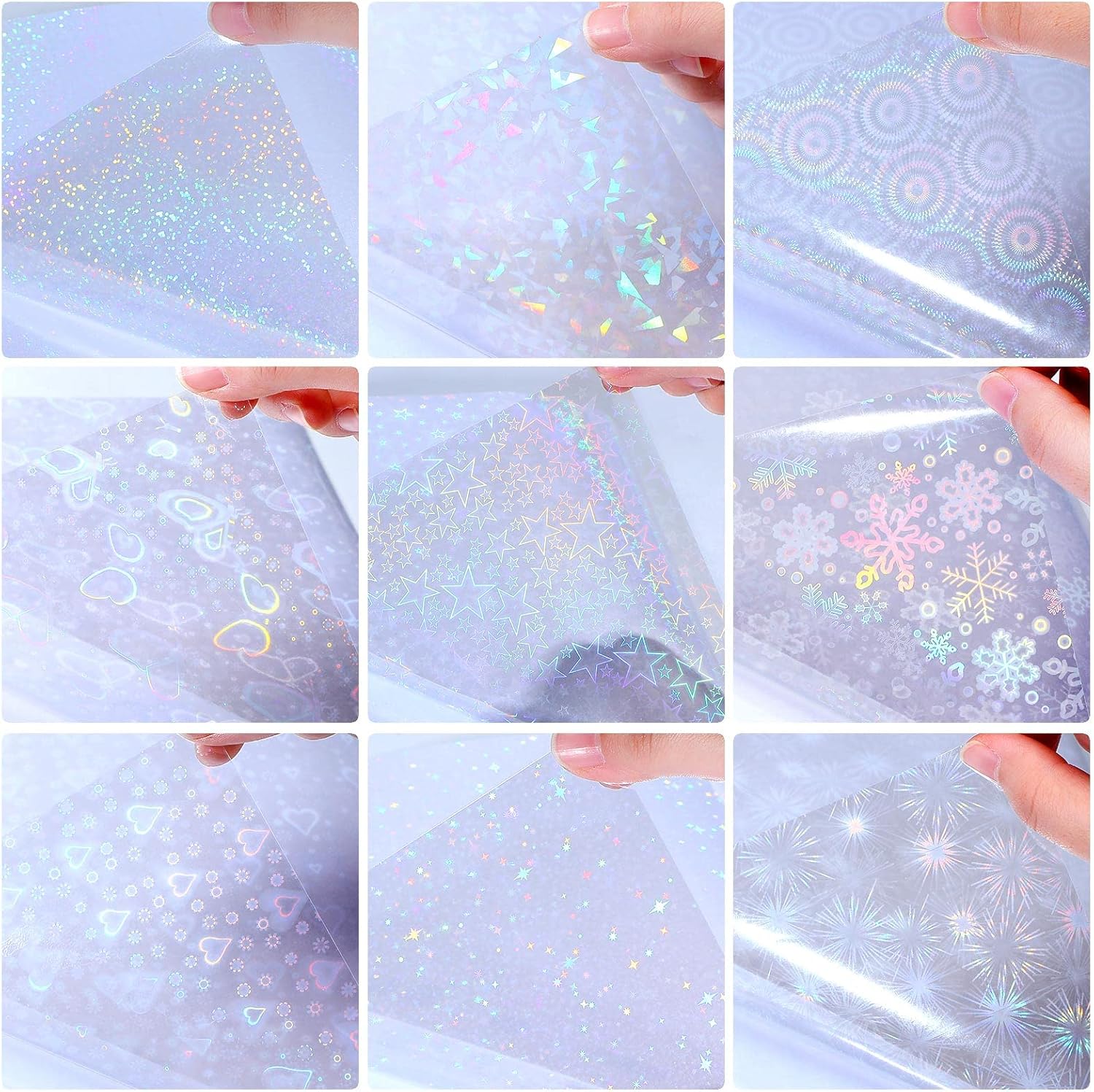 - Package Content: package contains 90 sheets of holographic stickers; Each sheet measures approx. 8.27 x 11.69 inches/ 21 x 29.7 cm; Sufficient quantity and suitable sizes can support your daily use and replacement demands