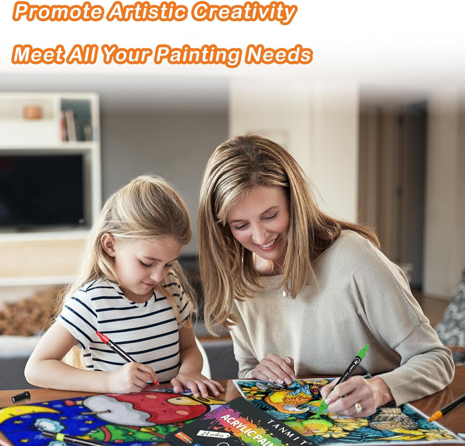 Acrylic Paint Pens Markers, 24 Colors Dual Tip Acrylic Paint Pens for Rock Painting, Wood, Canvas, Stone, Glass, Ceramic Surfaces, DIY Crafts Making Art Supplies (Round Tip and Fine Tip)