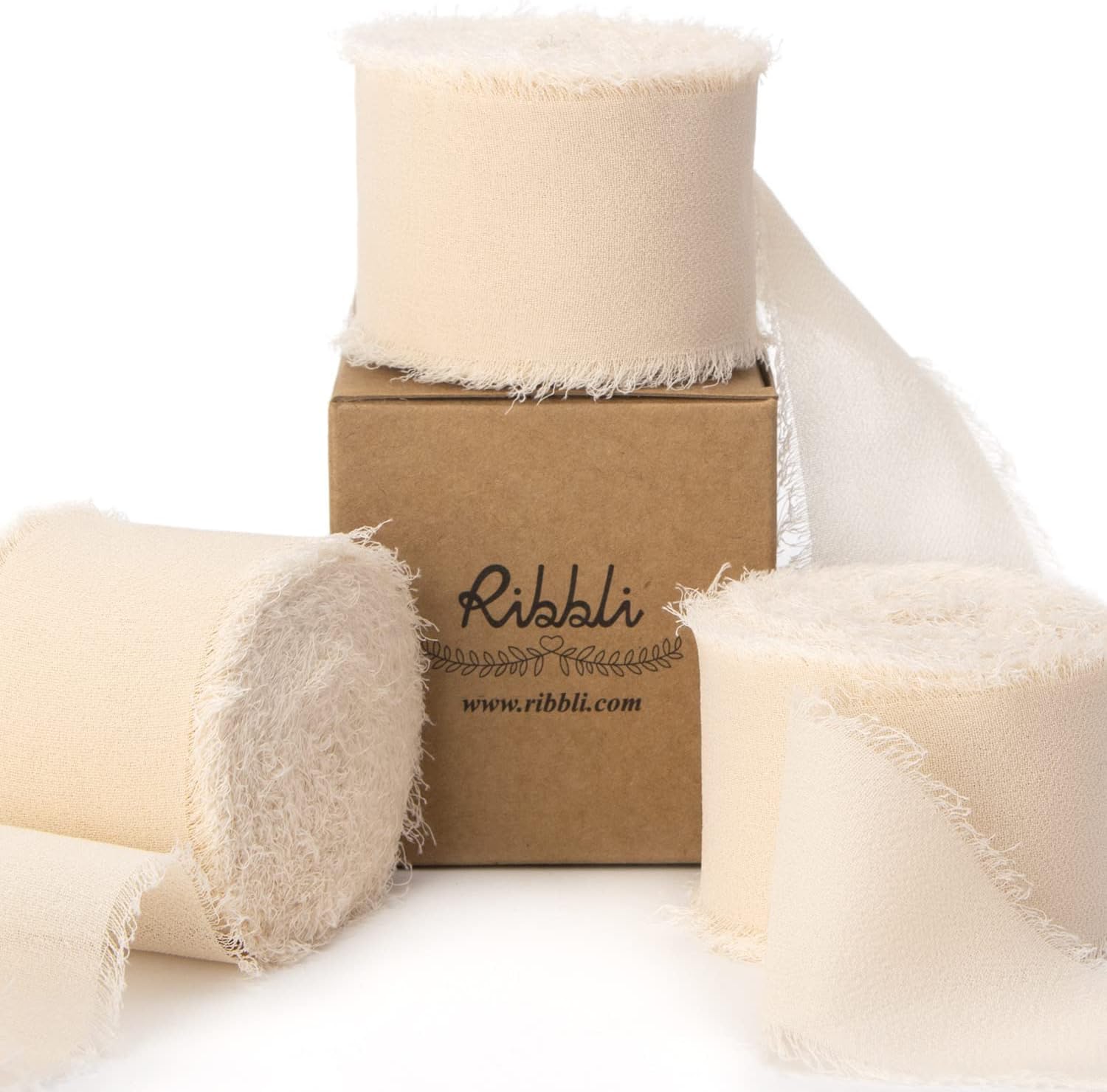 Ribbli Chiffon Ribbon - 1.5 inch x 30 Yard Champagne/Nude Silk, Handmade for Wedding Invitations, Gift Wrapping, Bridal Bouquets, Flower Arrangements
