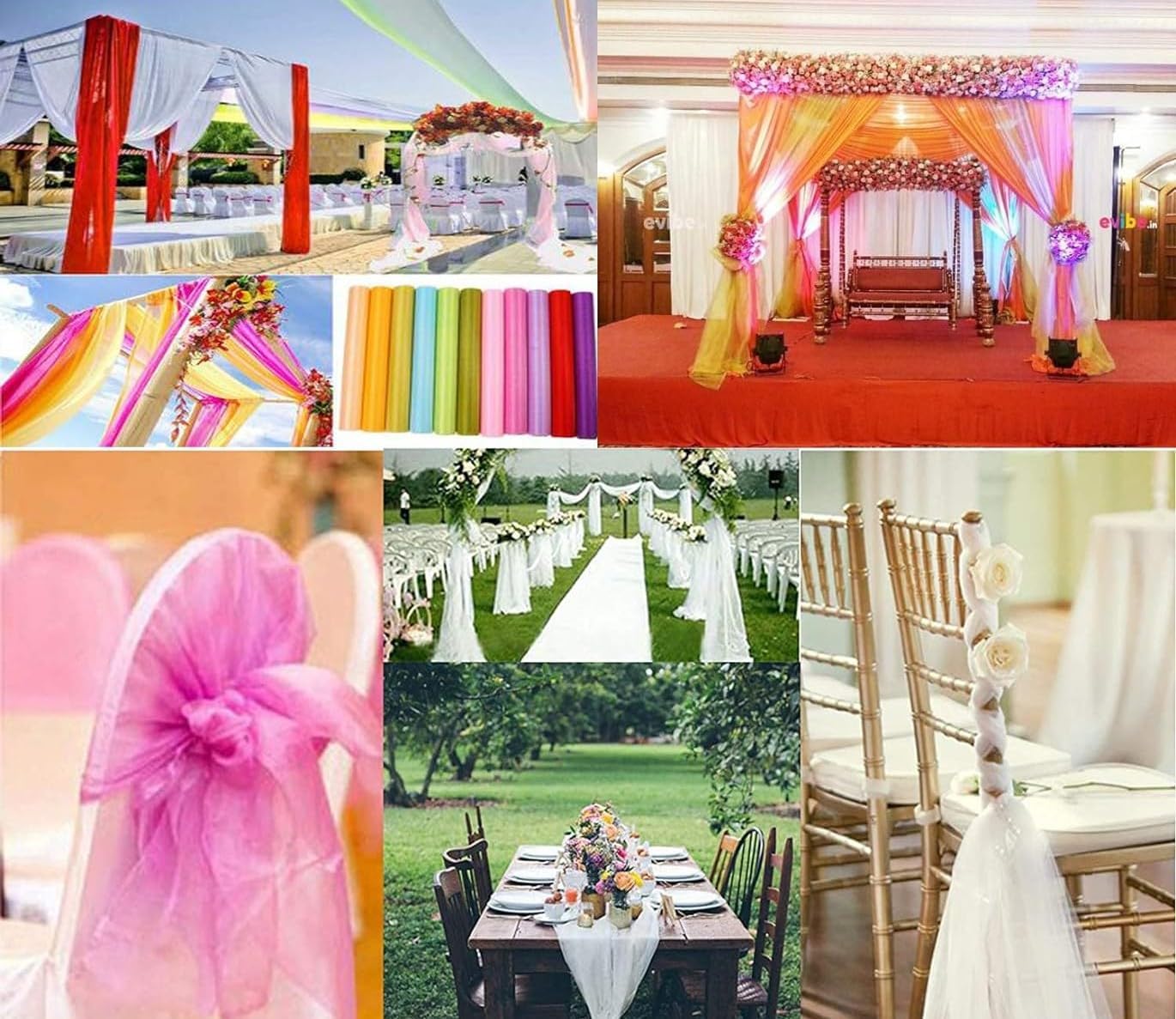 Organza Fabric 10 Yard Bridal Solid Sheer Bolt for Home Décor, Table Décor, Bridal, Fashion, Crafts, Decorations Silky Shiny Organza 44" - (10 Yard, Yellow)