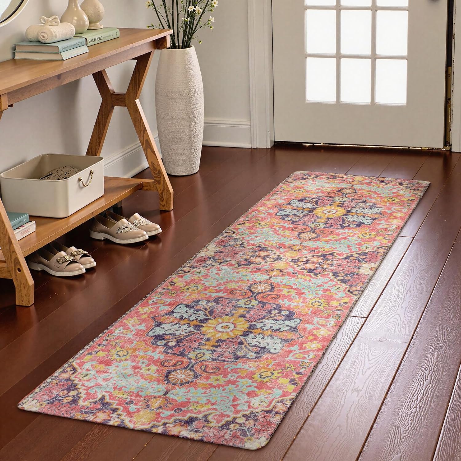 - [Functional Runner Rug] - Place a long rug runner by the kitchen sink for a colorful, cozy accent. A chic stylish rug runner are suitable for the narrow and long hallyway. For bedroom, entryway, bathroom, a rectangle vintage accent rugs are also prefect for daily use.