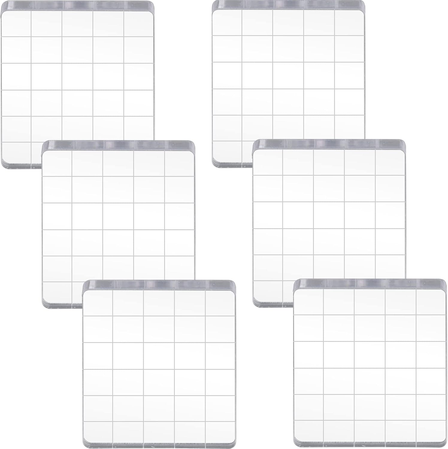 6 Pieces Stamp Block Clear Acrylic Stamping Blocks Tools Set with Grid Lines for DIY Crafts Scrapbooking Card Making Ornaments Stamping Projects