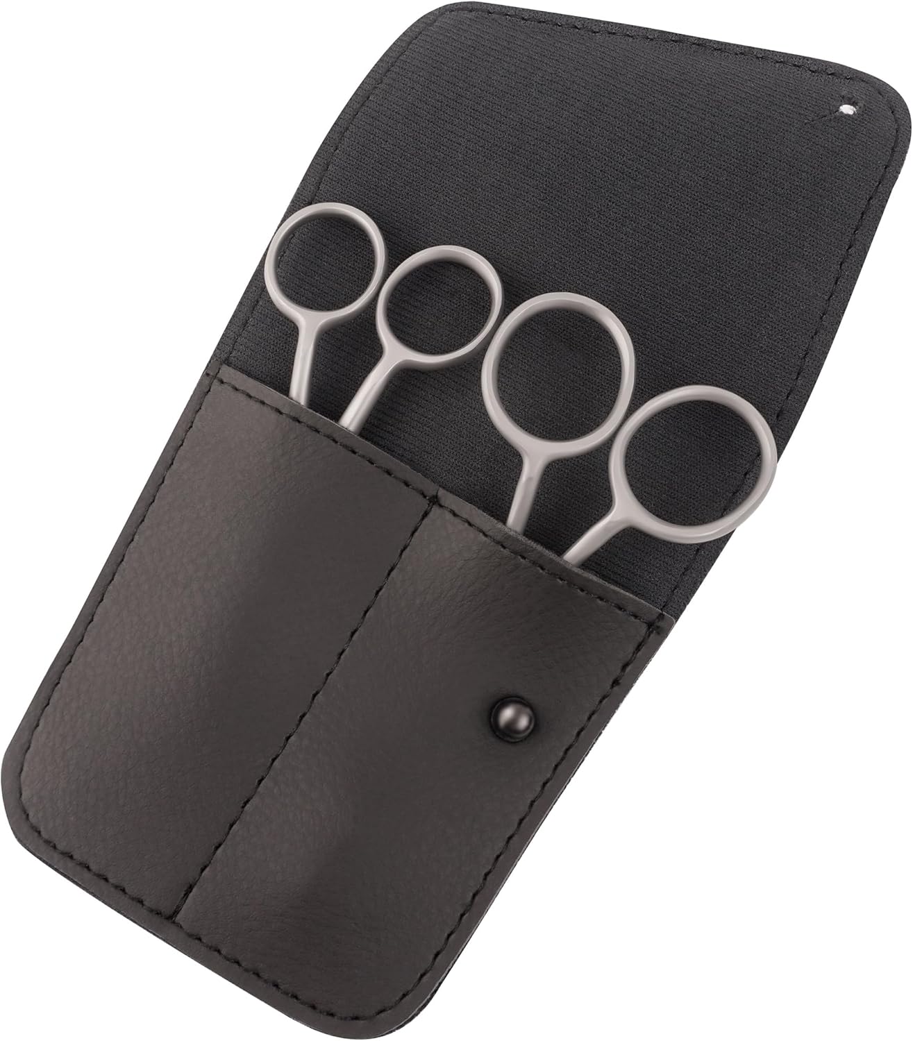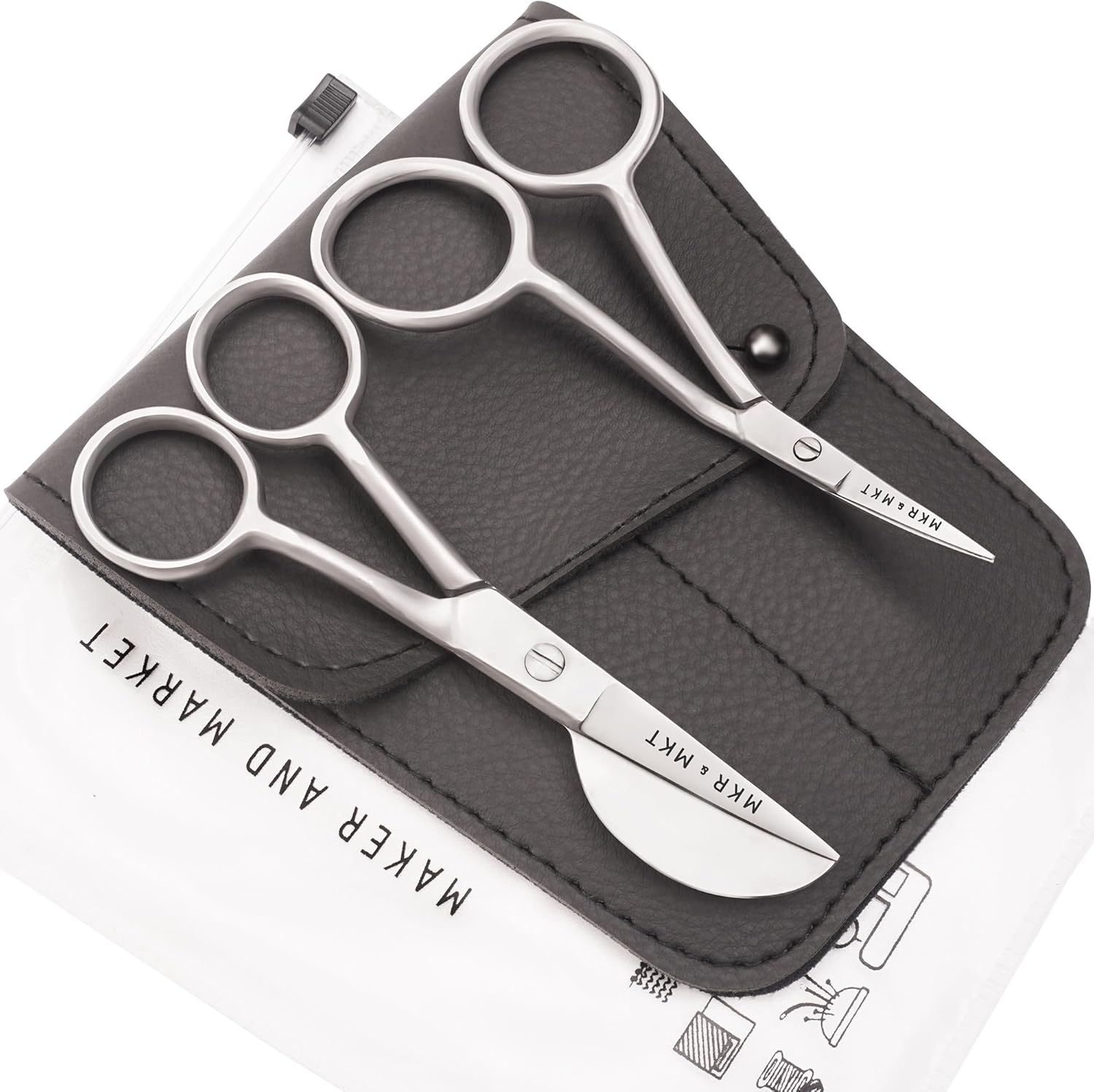 - ✂️ A Hand-Crafted Experience - featuring a set of 2 scissors in quality steel, a smooth and sleek satin silver finish, comfortable ergonomic double bend handles and sharp blades in a protective storage pouch.