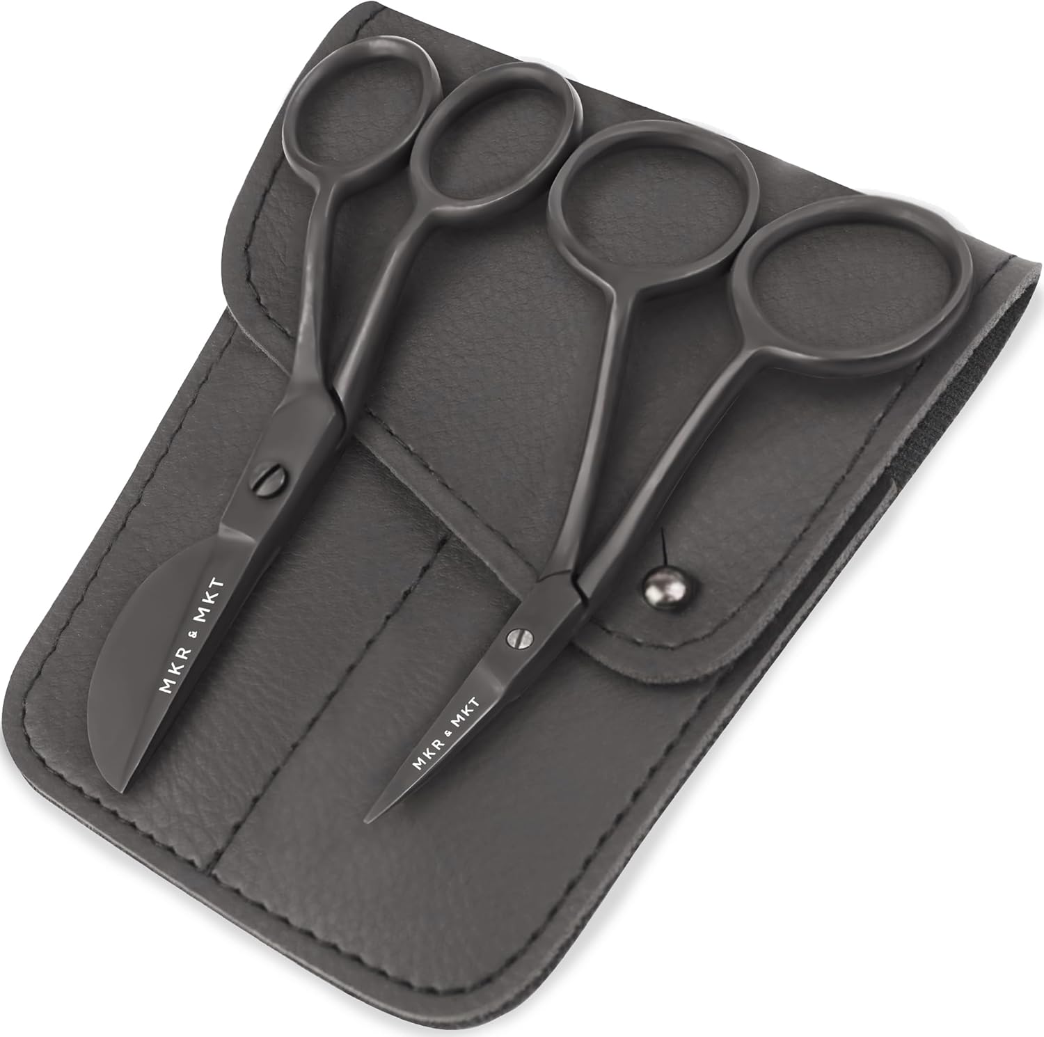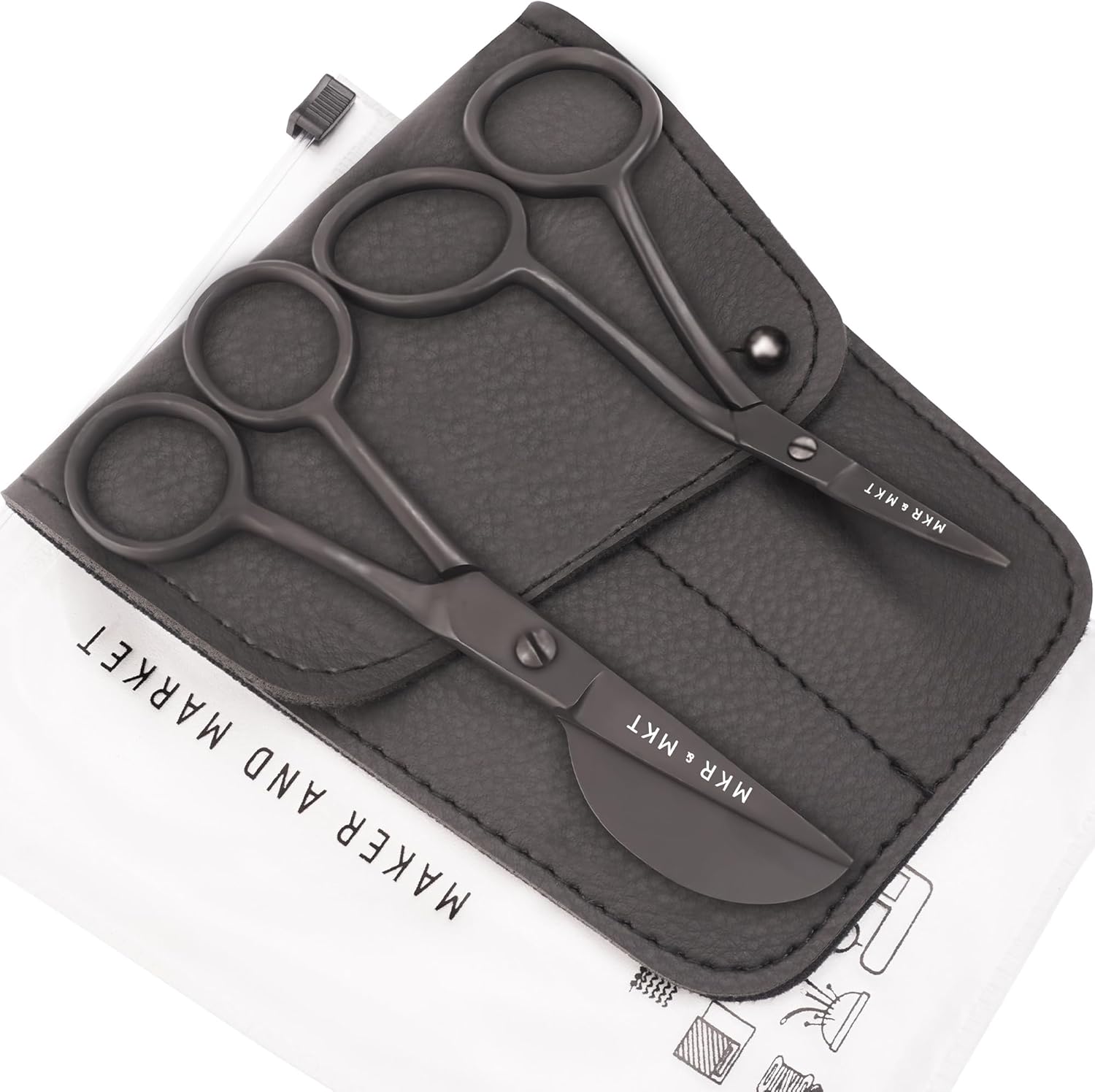 - ✂️ A Hand-Crafted Experience - featuring a set of 2 scissors in quality steel, a smooth and sleek satin black finish, comfortable ergonomic double bend handles and sharp blades in a protective storage pouch.