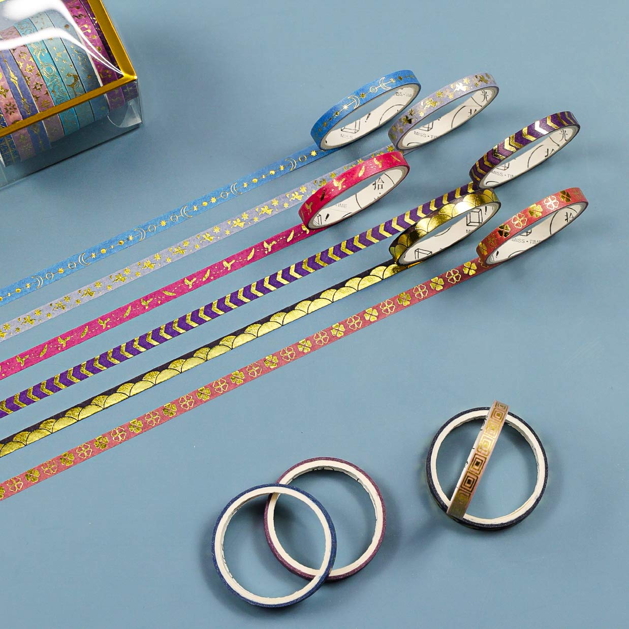 - VIBRANT DESIGN: This foiled washi tape is designed by professional Japanese designers. Various patterns can provide more choices for your use. Vibrant design gives you creativity. Your friends will be surprised by the creative gifts and decorations you make using this skinny washi tape