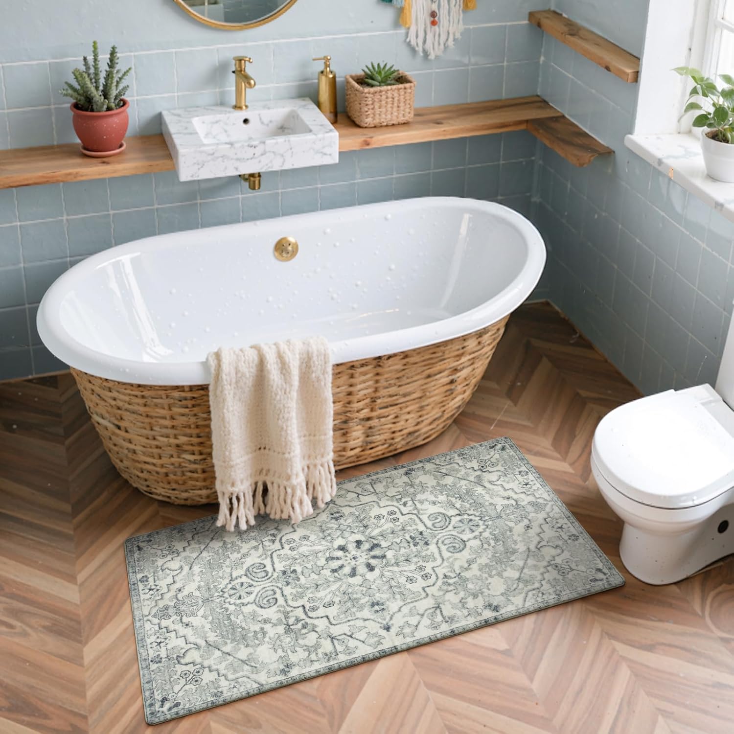 - [Machine Washable Rug] - Offering endless convenience for every lifestyle, our mats are safe in the washing machine. Also for daily cleaning with broom, or wipe. Due to soft surface, press the corners and then use a gentle way to vacuum to prevent the vacuum cleaner be sucked.