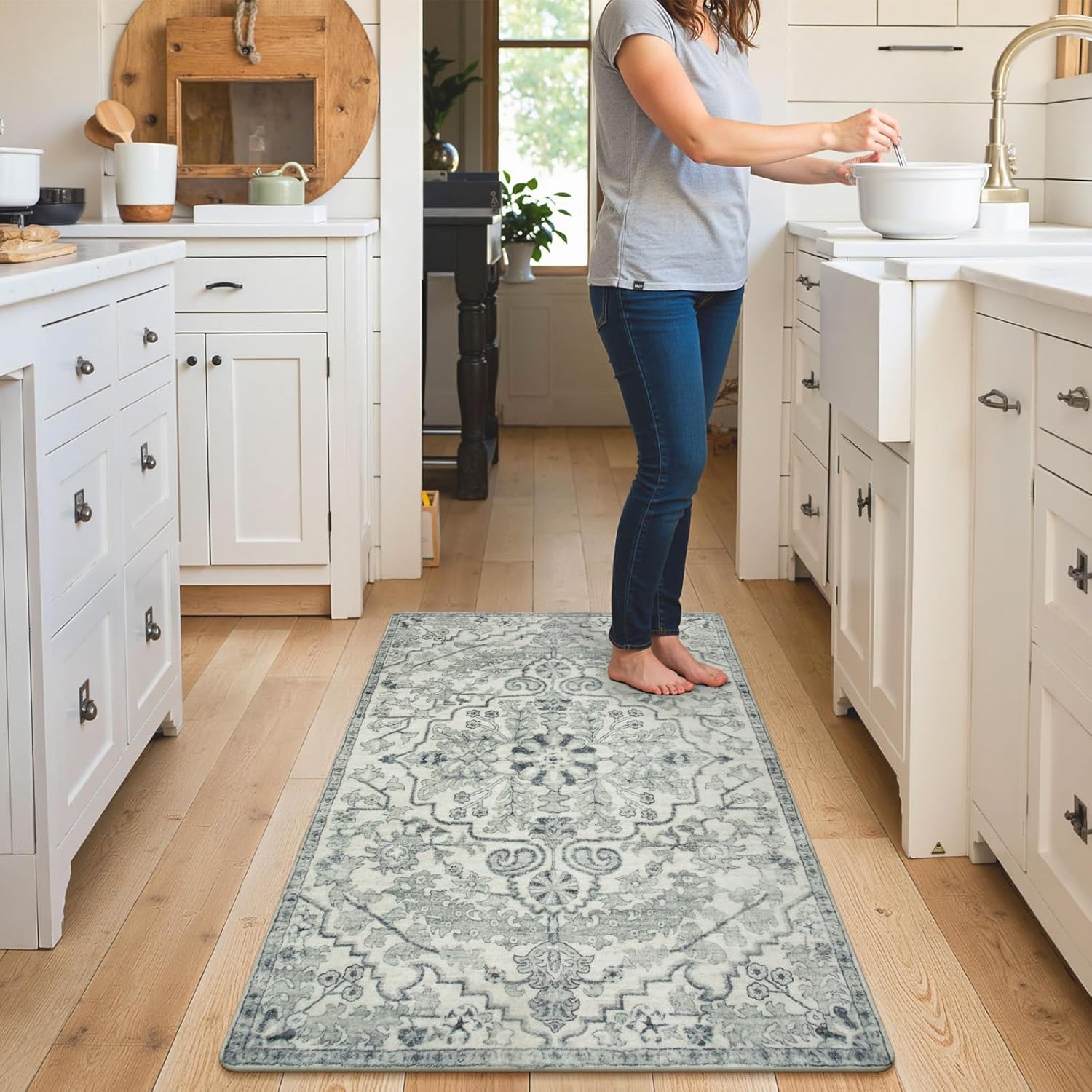 - [Machine Washable Rug] - Offering endless convenience for every lifestyle, our mats are safe in the washing machine. Also for daily cleaning with broom, or wipe. Due to soft surface, press the corners and then use a gentle way to vacuum to prevent the vacuum cleaner be sucked.