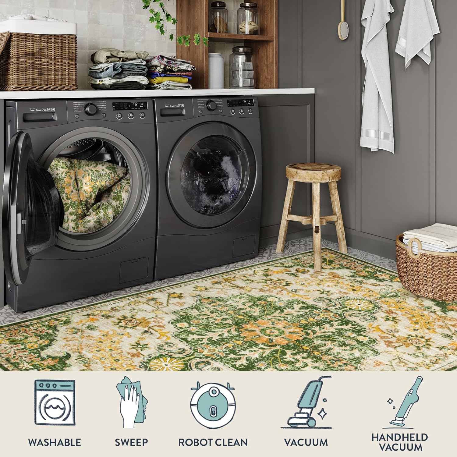 - [Safety Non-Slip Mat] - Our washable rug made of extra-absorbent fabric top layer and skid resistant backing which is safe for everyday indoor high traffic area from kid or pet activity.(Keep the bottom of the rug always be dry.)