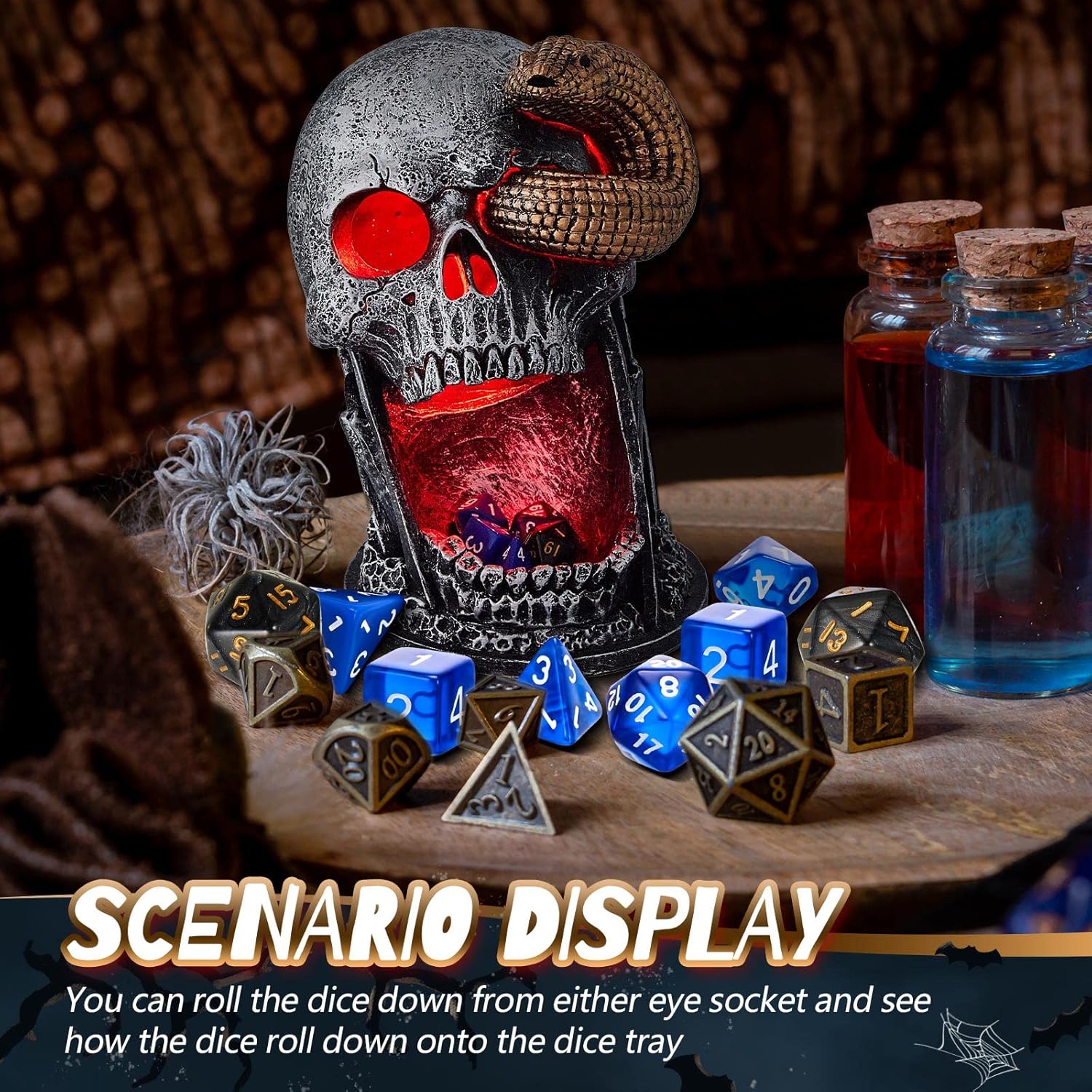 Dice Tower Skull Dice Tower Dice Roller with LED Light Dice Skull for Tabletop Roleplaying Game, Included Button Battery