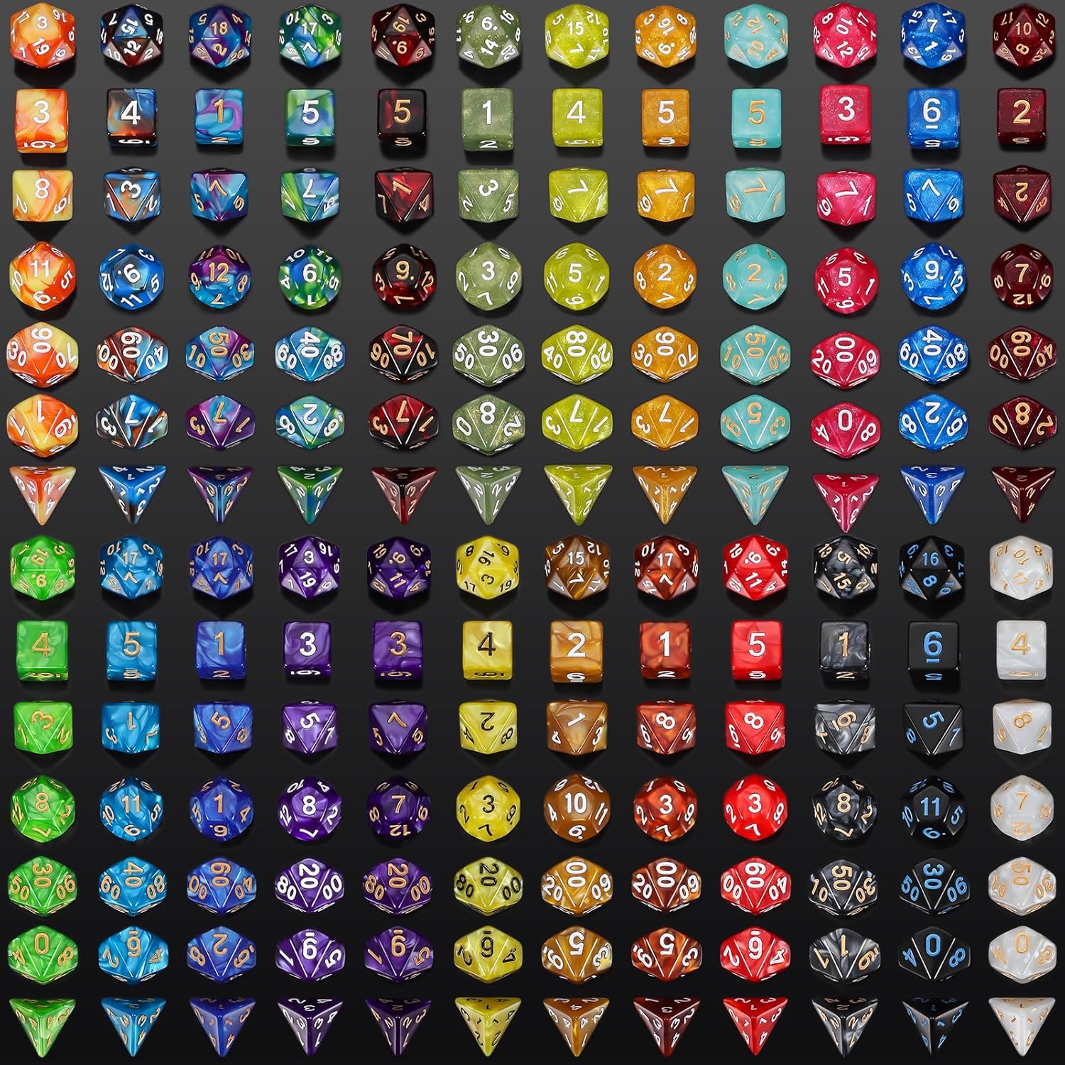 - Super DND dice set : 25 sets of 7dice ( 175pcs in Total ), Including 5 sets of double-color polyhedral dice that have a slight pearled sheen. Comes with a black Drawstring bag, convenient to store and carry.