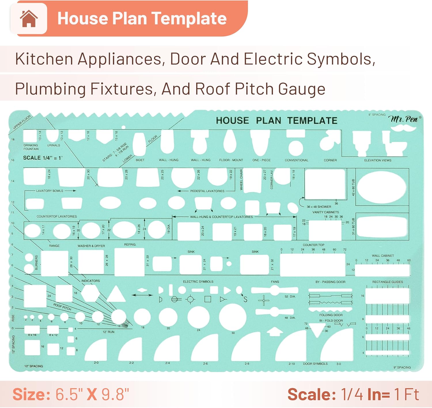 Mr. Pen- House Plan, 3 Pack, Green, Interior Design and Furniture Templates, Drafting Tools and Ruler Shapes for Architecture, Drafting Tools, Architecture Supplies, Drafting Templates