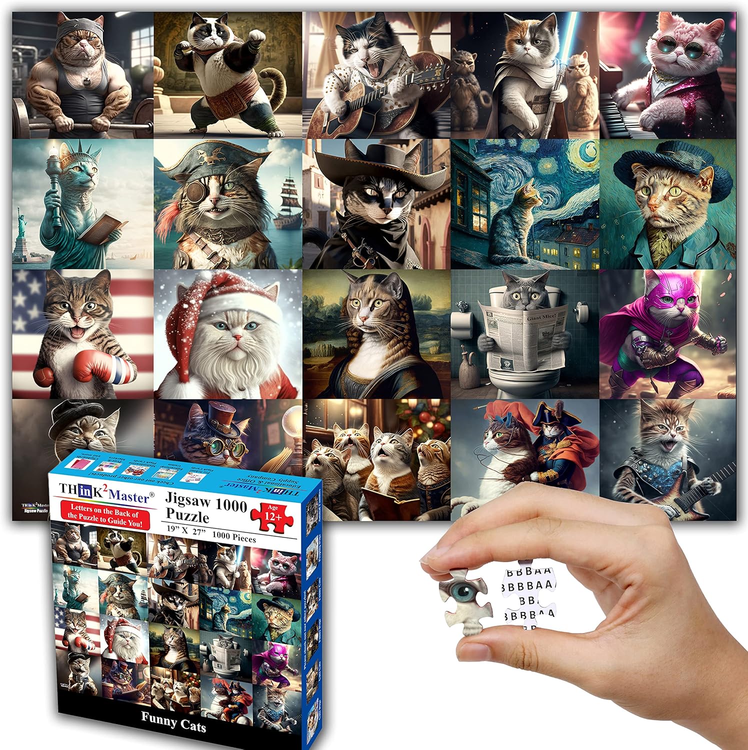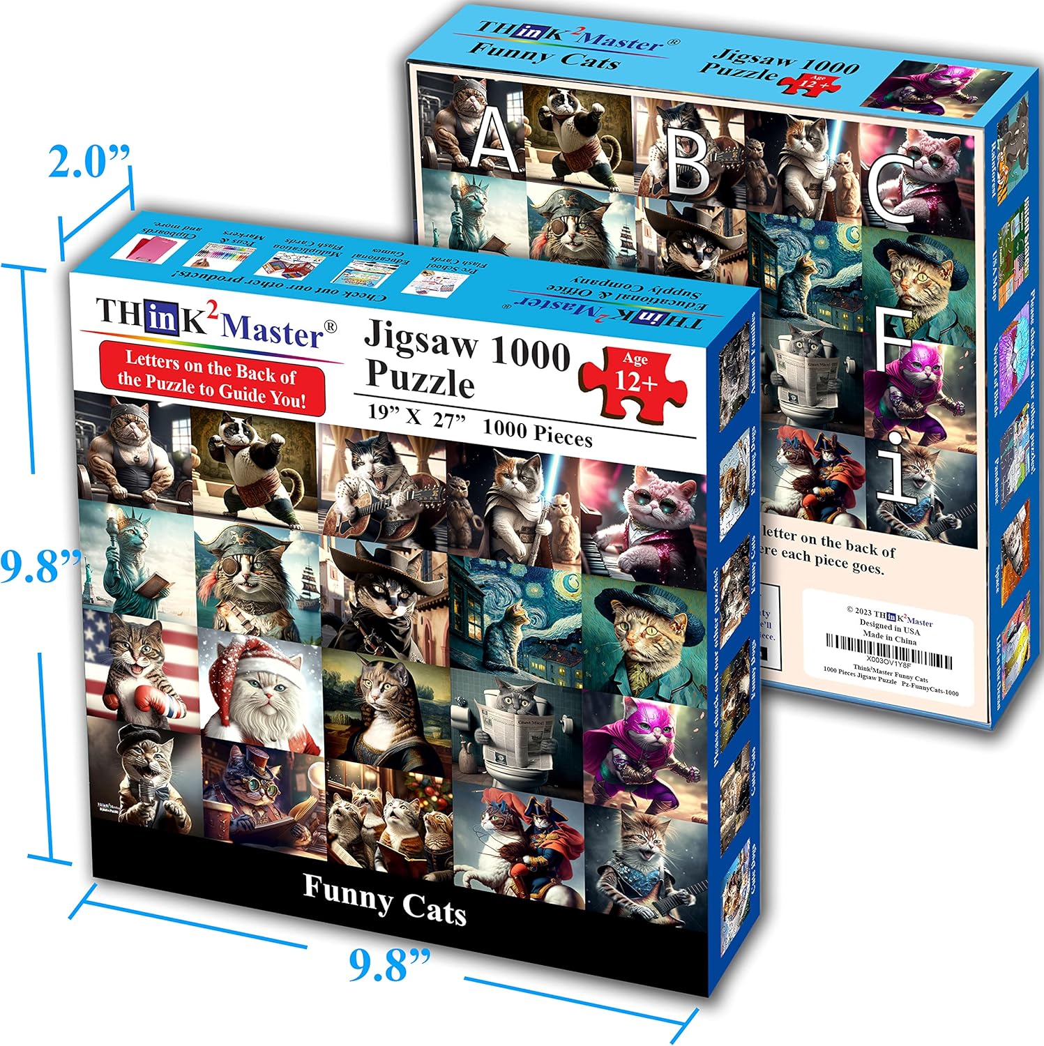 Think2Master Funny Cats 1000 Pieces Jigsaw Puzzle Featuring heartwarming Kittens and Cats. Fun for Teens, Seniors & Families. Great Gift for Kids Ages 13+ Size: 26.8” x 18.9”