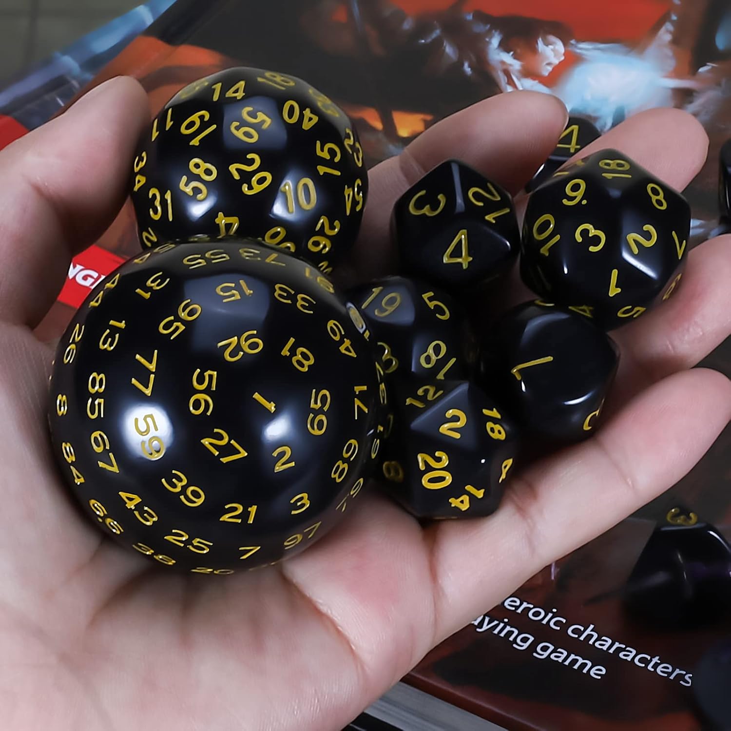 - Super dice set: DND Role Playing Dice (15pcs) from 4 sides to 100 sides, (contains D4,D5,D6,D7,D%,D8,D10,D12,D16,D20,D24,D30,D60 and D100) which can meet all your table game needs.