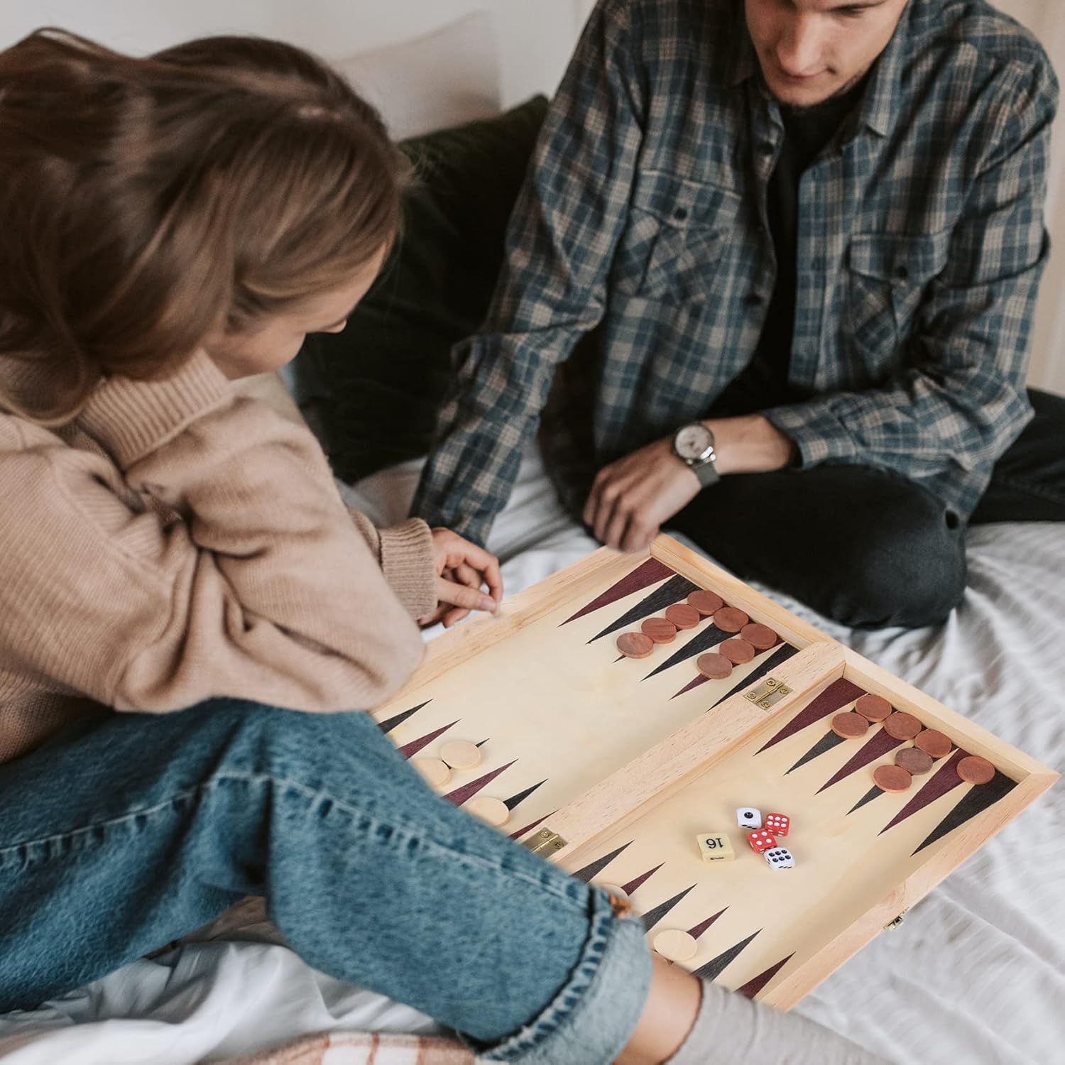 - 【PREMIUM QUALITY AND VERSATILE DESIGN】Crafted from solid wood, our 3-in-1 game set is built to last and provide endless hours of fun. With a chess, checker, and backgammon board all in one, you'll never run out of games to play. Measuring 11.4x11.2 inches when open.