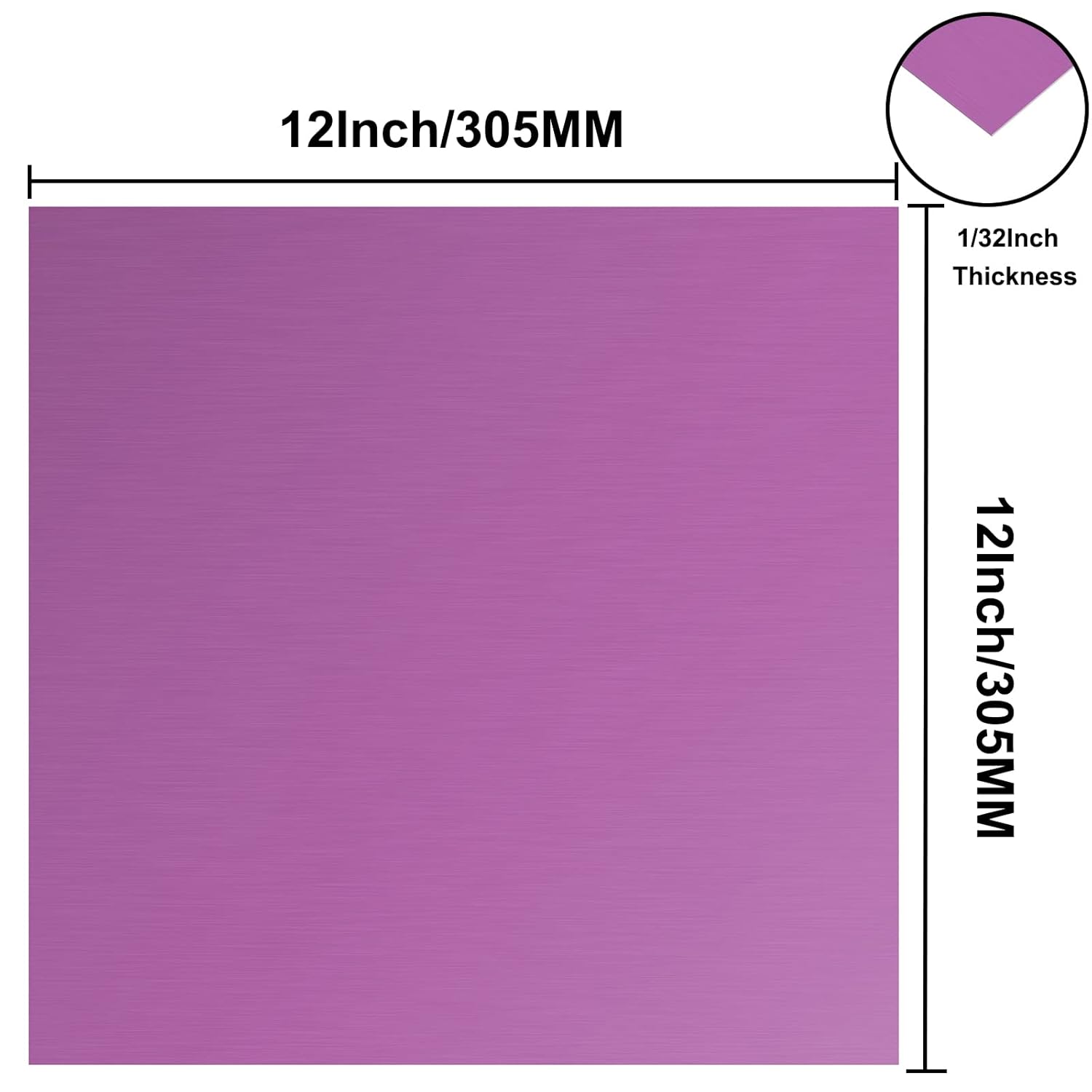 - 【Purple Anodized Aluminum Sheet Size】12”(L)x 12”(W) x 1/32”(0.80MM) (thick), suitable for engraving different signs, badges, brands, metal plaque, table plate, label plate and more.
