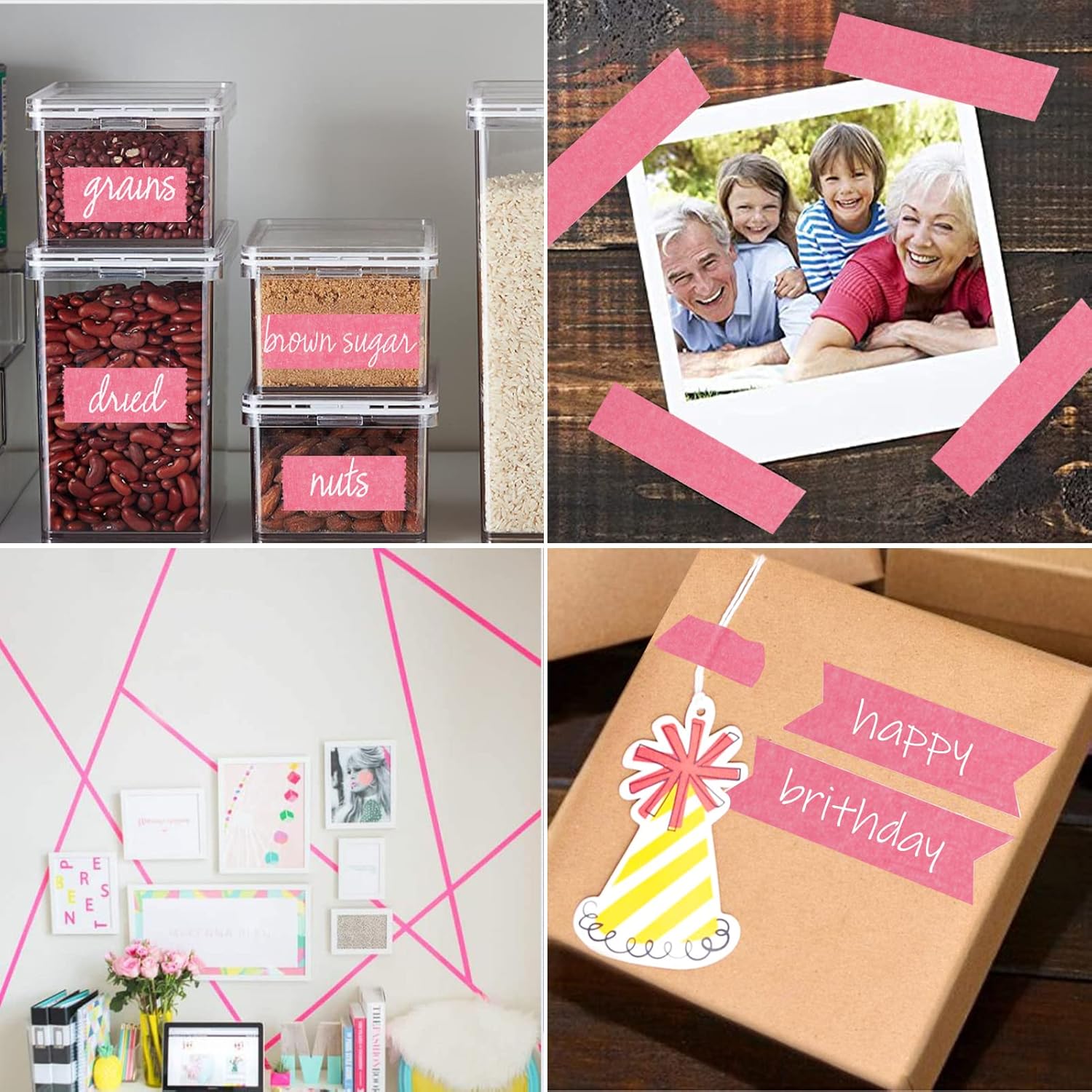 - Wide Application : Pink masking tape ideal for home painting , automobile painting, watercolor painting and acrylic painting.Also can be used as labeling tape for color coding on moving boxes, storage containers, cabinets, cables, documents. Use it in home decoration, party decoration, wall art, greeting cards, scrapbooking, automotive repair and much more