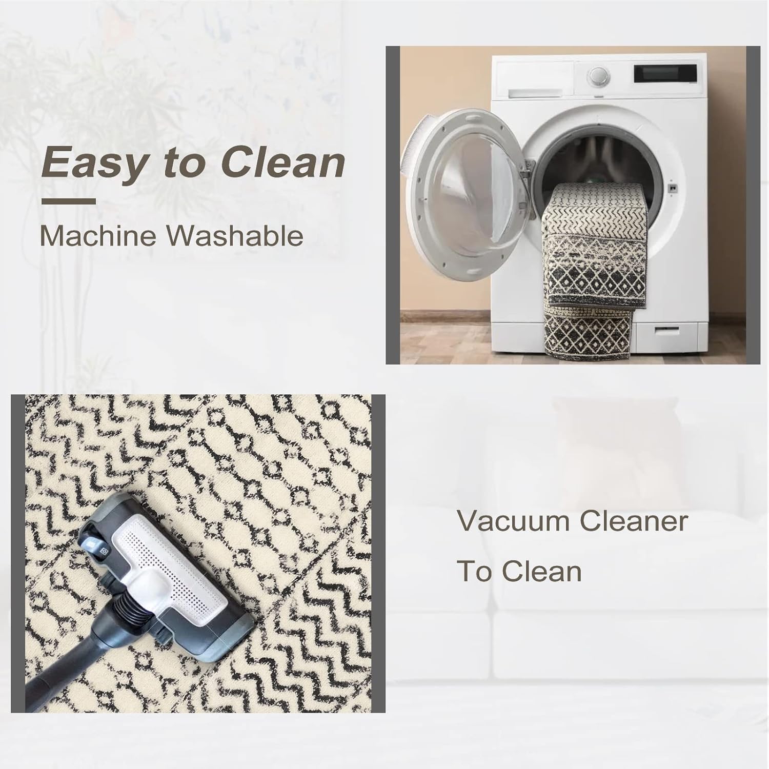 - Easy to Clean Washable Rug: The black rug for living room is easy to care for and washable, Keep your rug looking fresh with daily cleaning using a vacuum.For a deeper clean, simply toss in the washing machine on a gentle cycle with cold water , air dry and not need add bleach